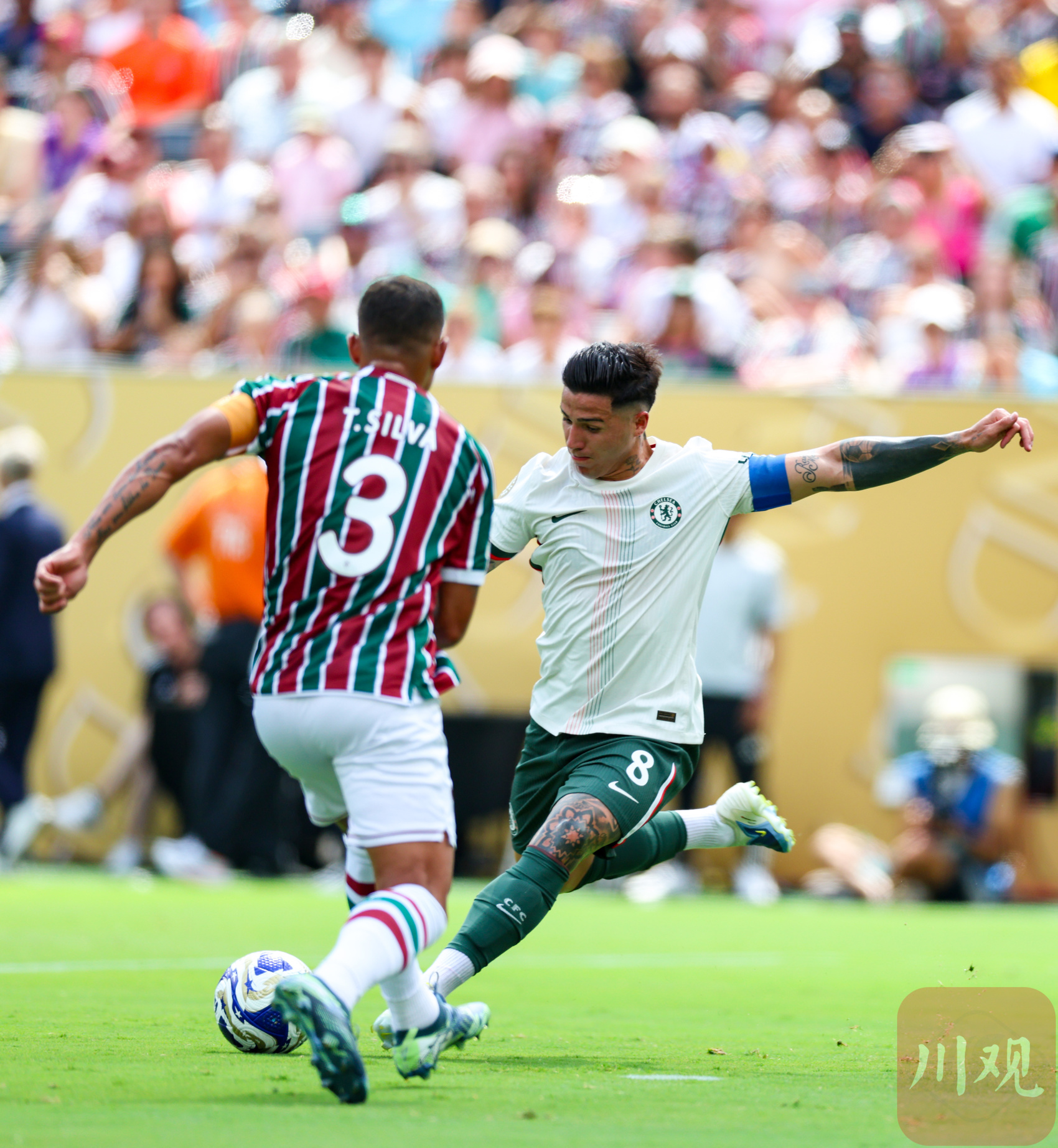 北京时间2025年7月9日凌晨三点,世俱杯首场半决赛,由切尔西对阵巴甲黑马弗鲁米嫩塞。本场比赛在美国纽约新泽西的大都会球场进行,70556名球迷见证欧洲南美双雄精彩对决。切尔西延续4231阵型,帕尔默、恩佐、凯塞多和新援若昂·佩德罗悉数出战。弗鲁米嫩塞派出了蒂亚戈·席尔瓦,44岁的法比奥和37岁的卡诺等球员。切尔西新援若昂·佩德罗梅开二度,切尔西2-0拿下对手,率先晋级世俱杯决赛,等待皇家马德里和巴黎圣日耳曼之间的胜者。