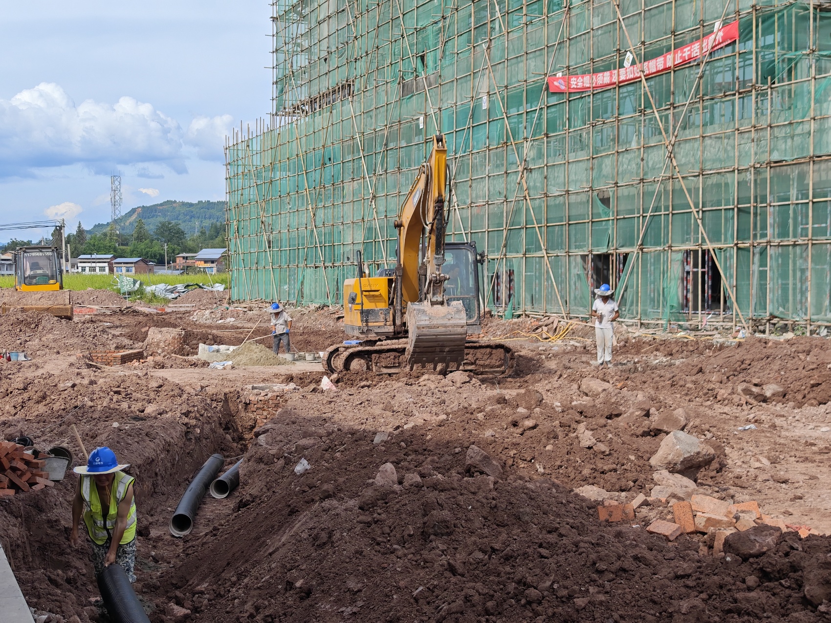 7月7日,达州东部经开区钠离子电池产业综合项目现场,几名工人们正铺设排水管道,一栋5层高的综合办公楼已初具规模。