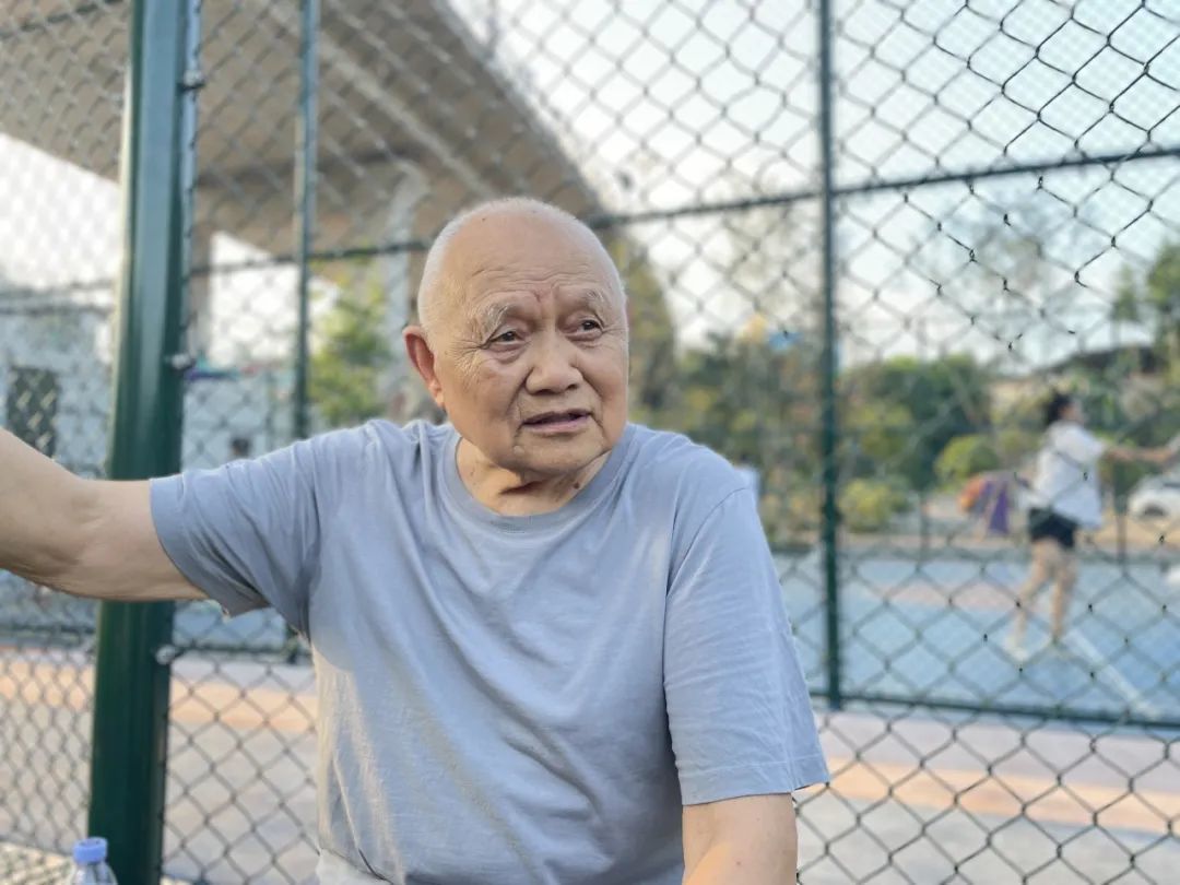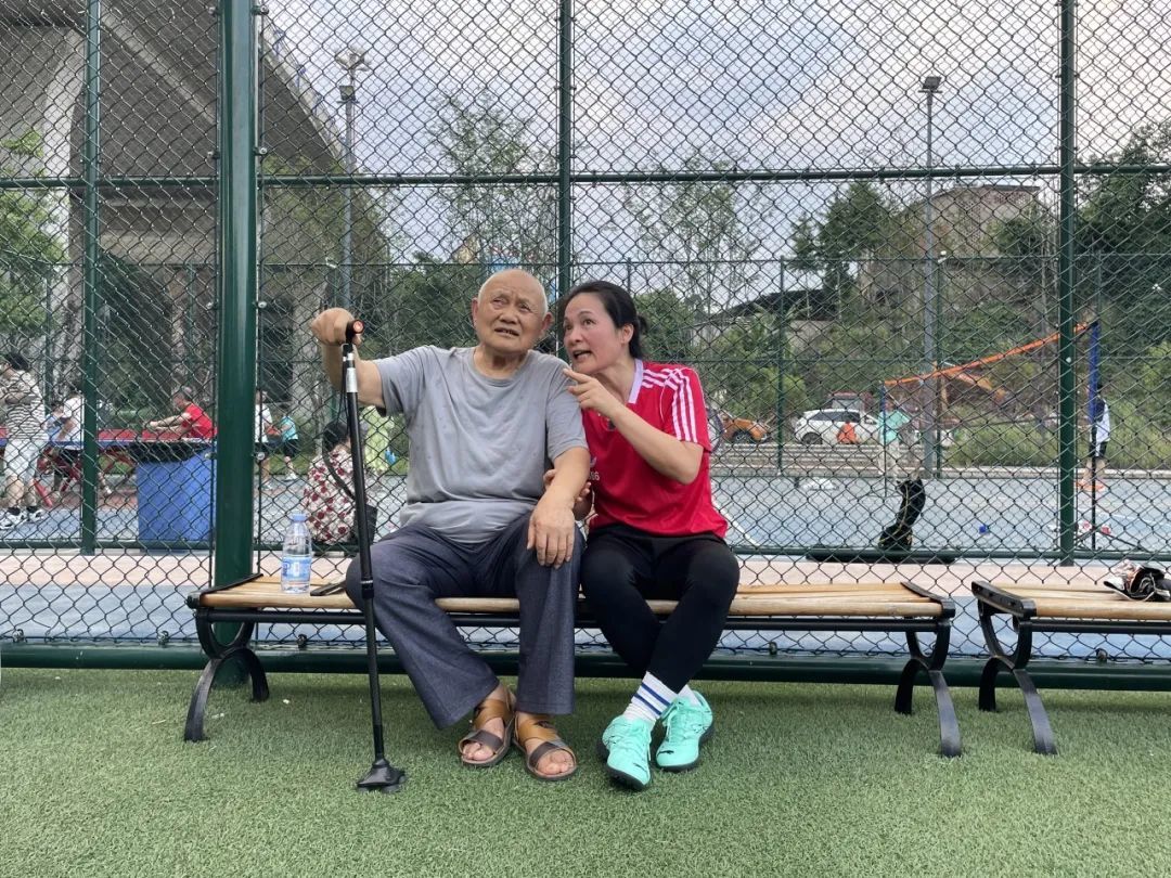球场边,前资中女足队员贺群挽着91岁高龄的前资中女足教练付有刚说,“付老把子,你看现在的场地好巴适,如果是按照当初我们来说的话,这个是不是叫奢华……”付有刚哈哈一笑道:“那是哦……”她们戏谑的称他为付老把子,他也欣然接受,这么多年来,他们早已相处得像父女。