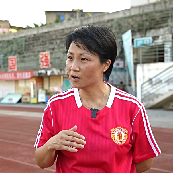 初代资中女足队员向莉敏:每个时代的运动员有每个时代的特点,今天这个比赛主要是一个传承。老女足的精神还是在,拼劲儿还是有,但是体力、速度确实下降了,资中小女足特别棒,初生牛犊,他们会很有前途。