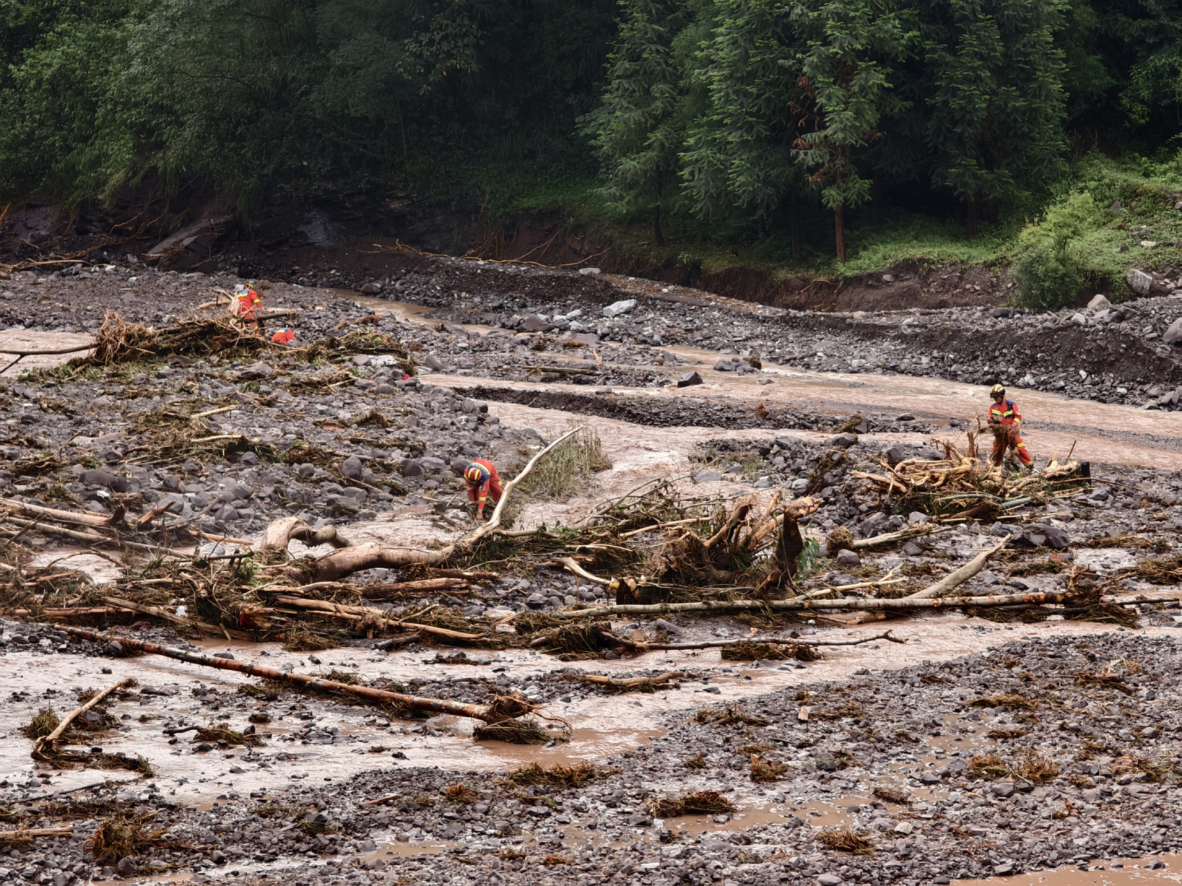 消防、应急救援队伍、武警官兵、民兵等救援人员携带专业装备,抓住雨停后具备救援条件有利时机,对滑坡区域进行搜救。目前搜救工作正紧张进行中。