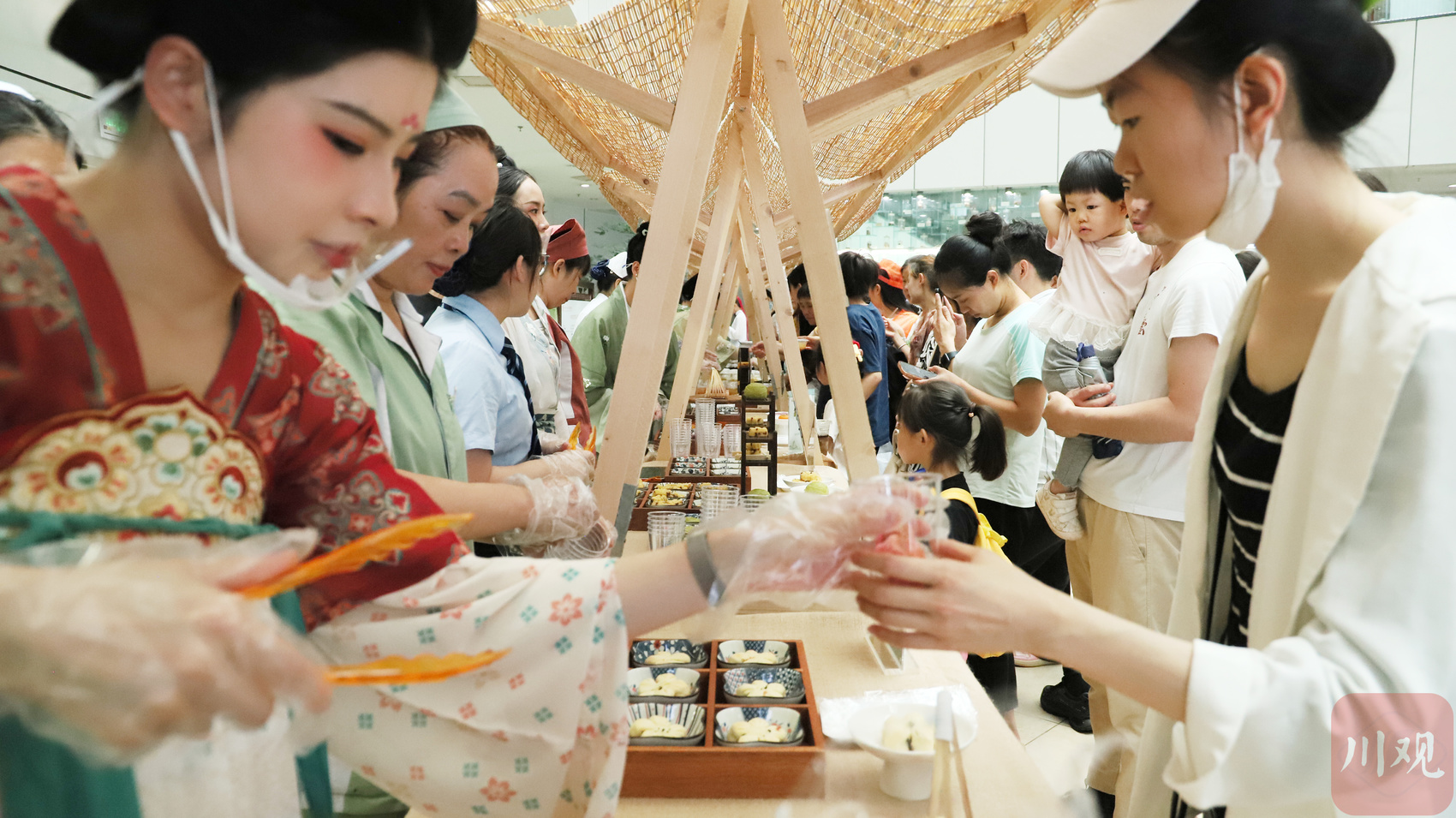 7月9日上午9点,走进西南医科大学附属中医医院门诊大厅中庭,如同置身于“游园会”一般,有活动互动区域设置了闻香识药盲盒、药膳拼图、虚拟药膳制作等沉浸式互动活动,让群众趣味游玩;有“集市”可品尝药膳茶饮;也有节目表演,逗得现场群众哈哈大笑。
