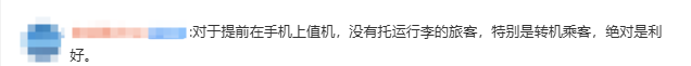 登机只需提前15分钟,打破了国内机场一般提前30到40分钟截止值机的惯例,民航出行便捷度进一步提升。有网友表示:效率越来越高,越来越方便了。