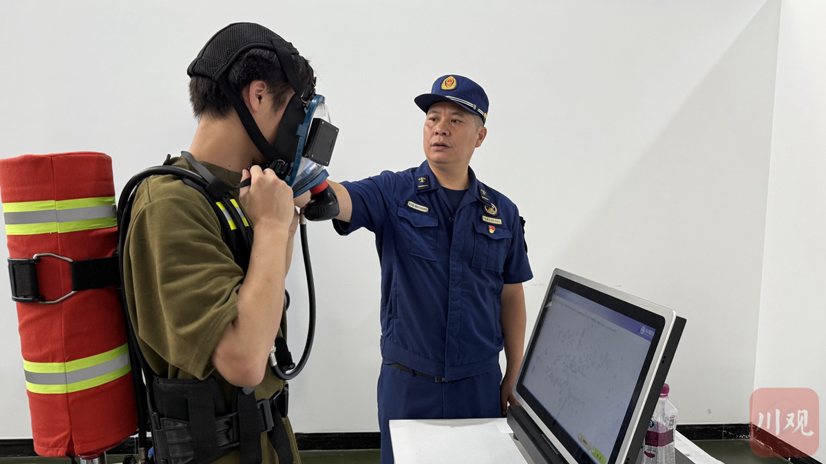 “有毒环境,呼吸机是生命最后的防线。”7月9日,在自贡川南新材料化工园区化工安全技能实训基地,中昊晨光(自贡)氟材料有限责任公司(简称中昊晨光)的专职消防员杨永刚正在对彩灯制造企业的10余名新员工进行消防培训。刚入职的徐天乐根据指示,迅速背起正压式呼吸机、戴紧面罩,紧盯屏幕上跳动的虚拟场景,一步步完成应急处置操作。一旁,灭火器使用、安全急救等培训同步展开。基地其他区域,更多学员在专家指导下操作特种设备,操作区只闻器械运转声。