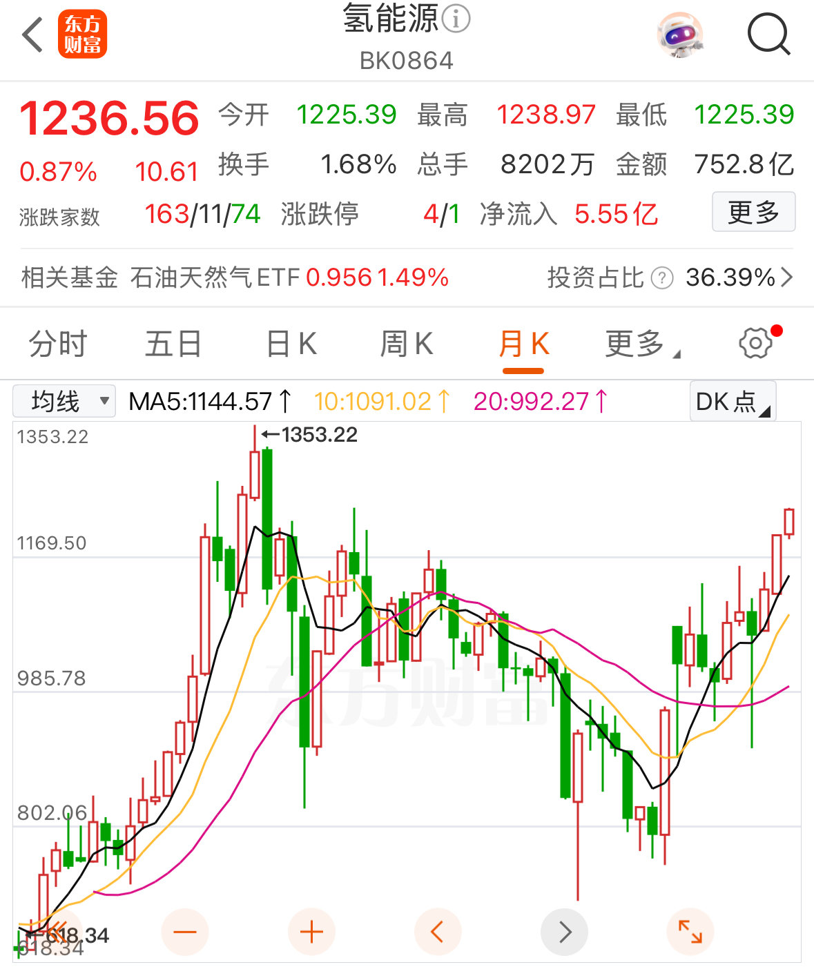 此外盘面上另外一个轮动热点板块是氢能源概念股。该板块指数早盘一度冲高至1238.97点,刷新2021年12月以来的历史纪录,最终收盘于1236.56点,单日上涨0.87%。板块内个股呈现普涨格局,赫美集团、天沃科技、华光环能等多股强势涨停,凯大催化、三孚股份、豪森智能等涨幅超过5%。其中,川股厚普股份表现尤为亮眼,股价大涨15.72%,在氢能源概念股中领涨,也位居四川板块涨幅榜第二位。