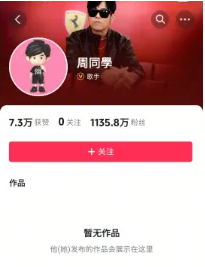 抖音平台,“周同学”账号粉丝数已突破1100万。