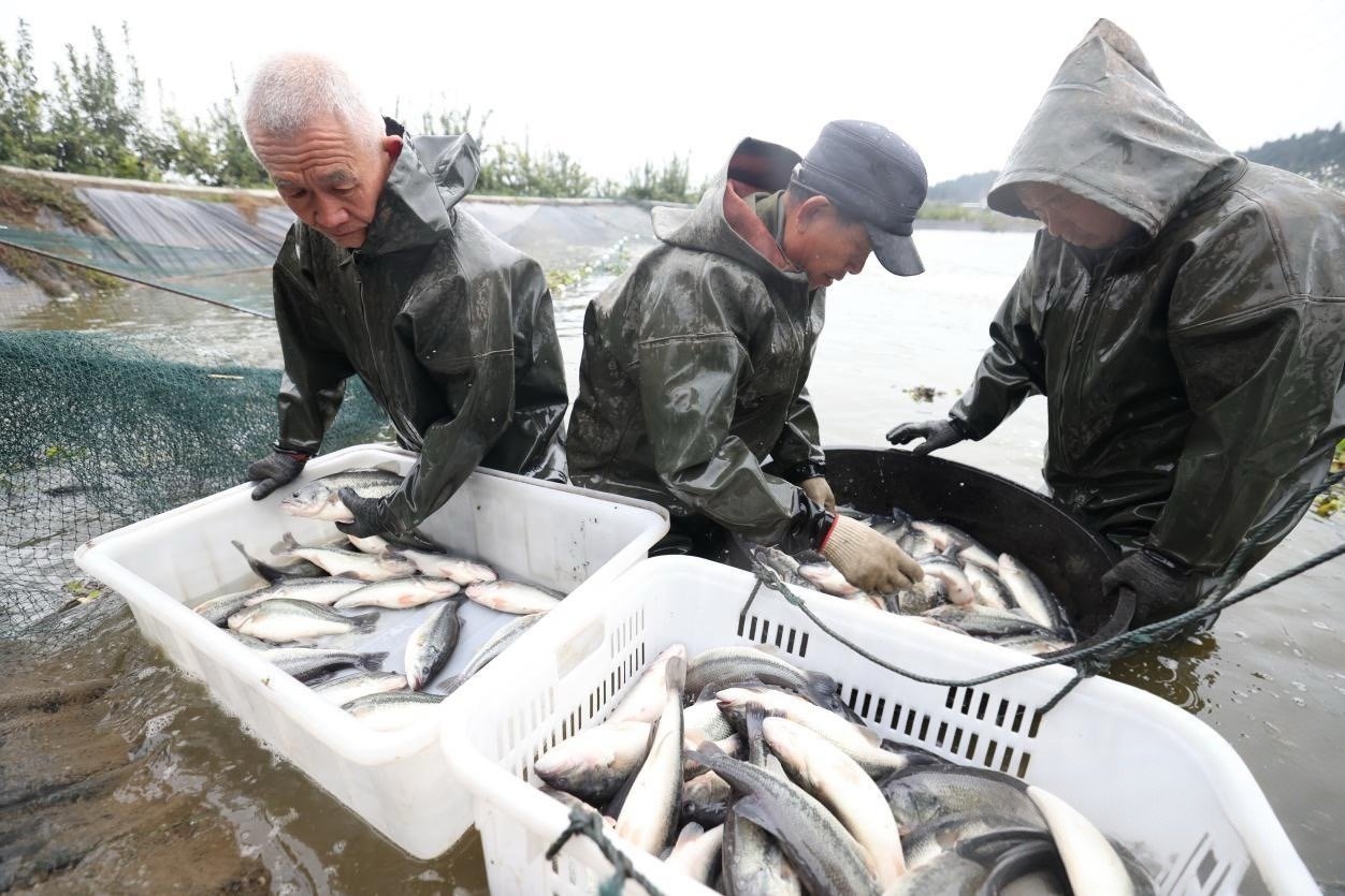 养殖户在捕捞鲈鱼。受访者供图