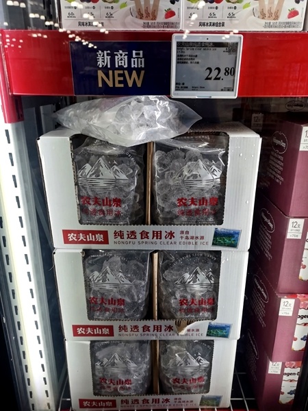 2公斤规格的可食用冰卖出22.8元——近日,山姆会员店“农夫山泉纯透食用冰”的售价引发热议。网友一换算才发现,自己在家冻2公斤冰块大约需4瓶500毫升的瓶装水,22.8元的售价则相当于每瓶水售价约5.7元,约为瓶装水零售价的3倍。