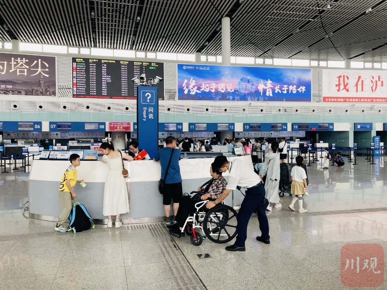 在提升出行效率方面,泸州机场继续坚持动态调配航站楼值机柜台、安检通道等资源,根据客流高峰时段灵活增开通道,并安排专人引导团体旅客和晚到旅客快速通行。候机大厅里,身披“志愿者”绶带的工作人员随时为旅客提供咨询服务;针对首次乘机的旅客,“首乘·问我”服务岗的工作人员会全程陪同办理手续;早到的旅客则可以在专门设置的休息厅里放松等候。泸州机场相关负责人表示,从安全保障到服务细节的一系列务实举措,只为让来泸返泸旅客在这个暑运的每一段旅程都更安心、更舒心。(泸州机场供图)