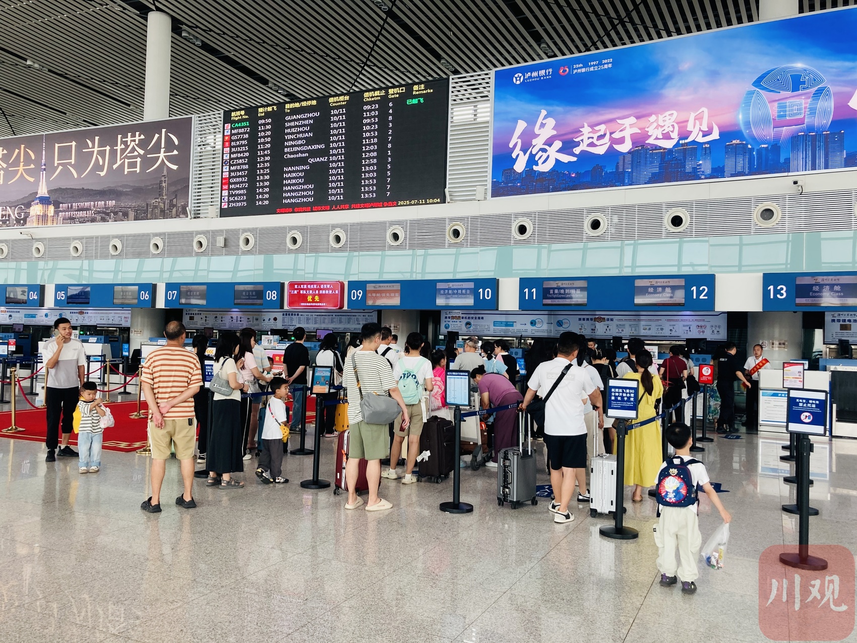 暑运客流叠加,保障力量也在同步升级。据了解,泸州机场人力资源部已提前引入多名航校实习生,投身无陪儿童手续办理引导;公司办公室、党群工作部等职能部门党支部与运输服务部党支部开展共建,选派党员轮岗协助陪护。“我们支部还成立了青年党员突击队,党员们利用轮休时间支援手续办理,让家长从排队到办结的过程更高效、更省心。”陈兰补充说。