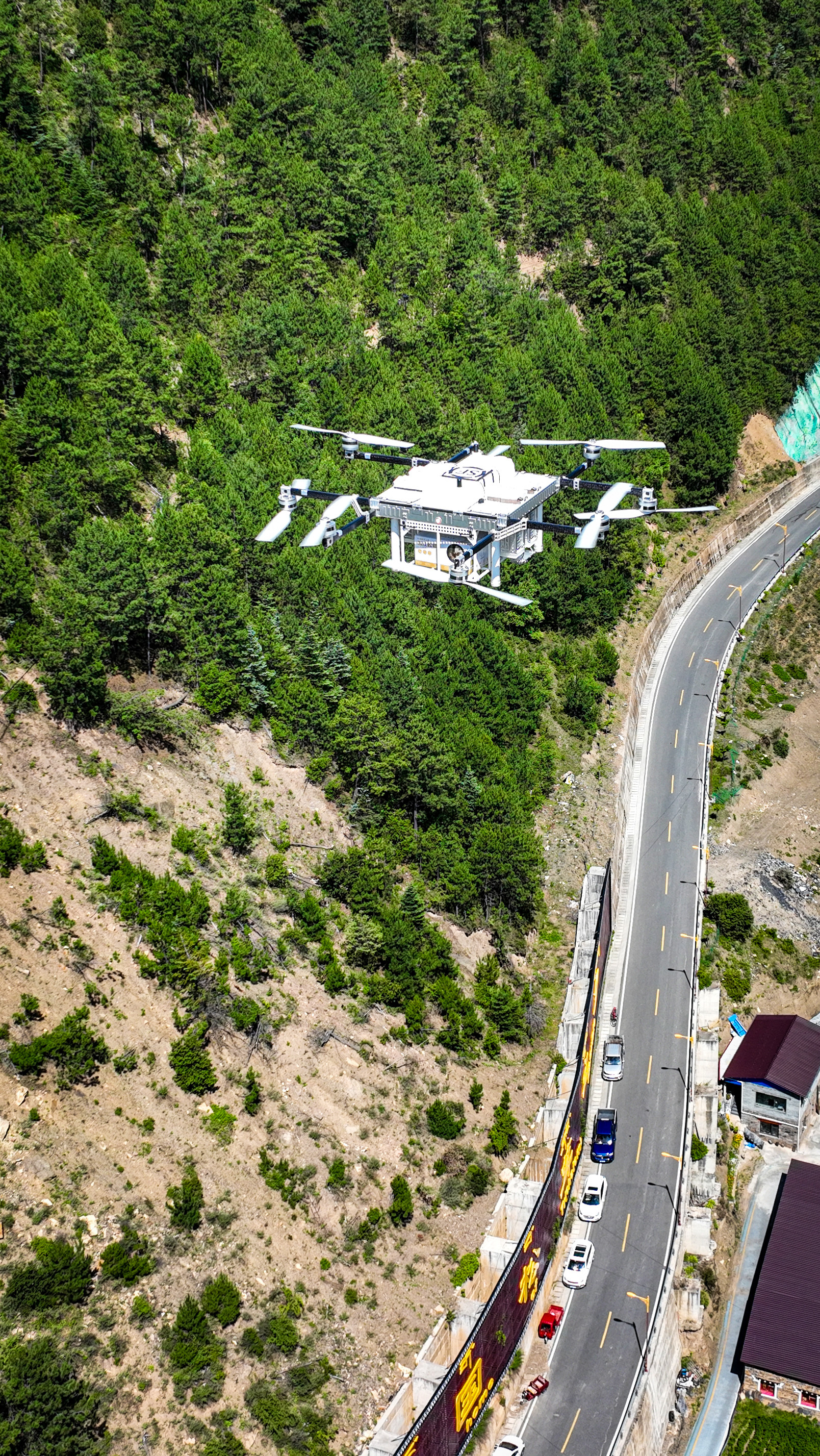 顺丰松茸运输无人机在山间飞行。