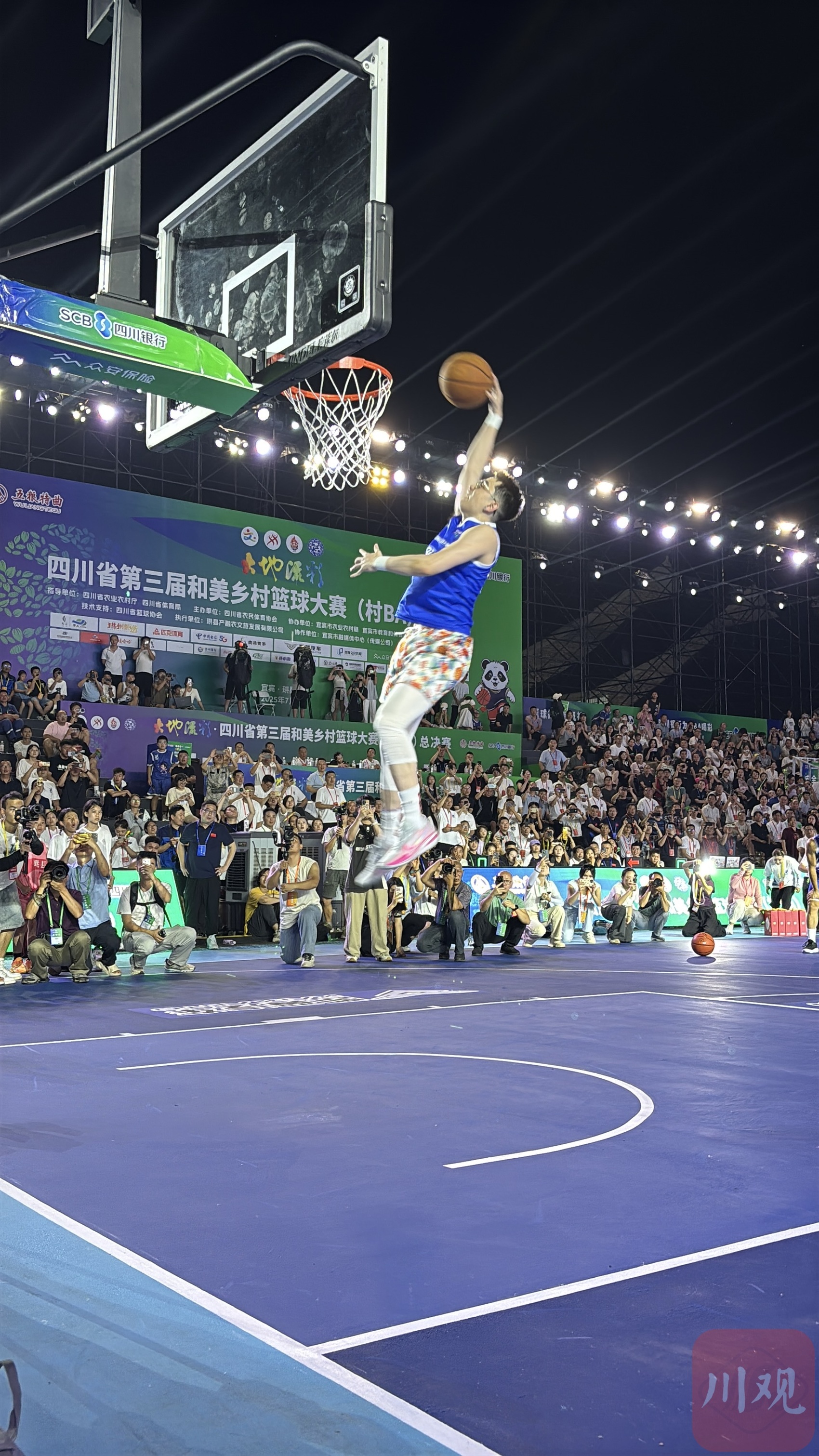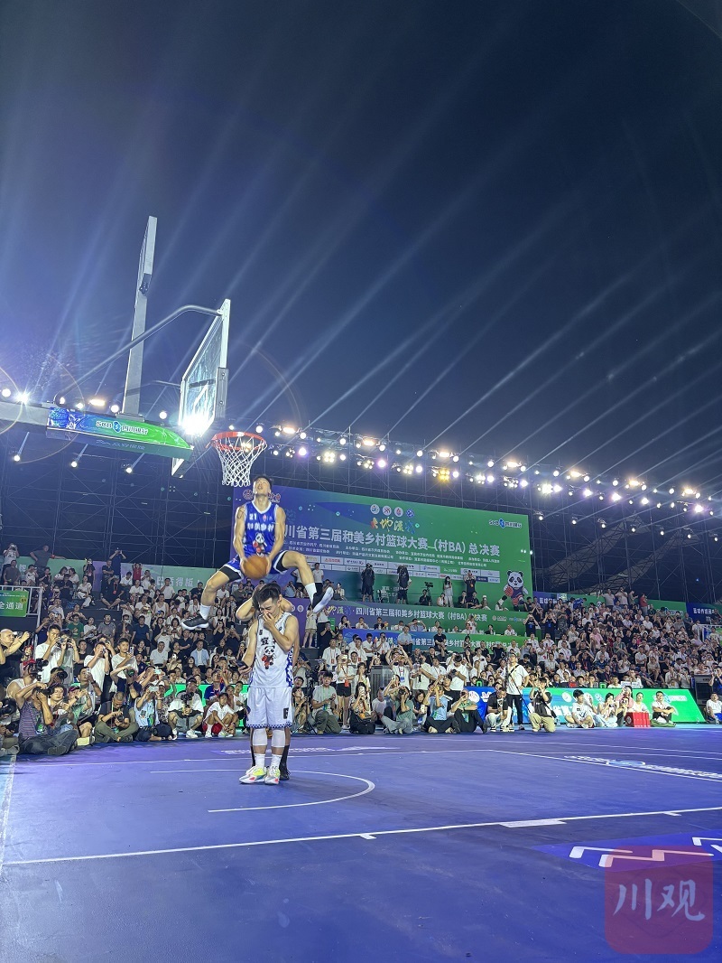 7月11日晚,在四川省第三届和美乡村篮球大赛(村BA)总决赛揭幕战中场休息中,中国知名扣将陈登星、成都街头扣篮冠军张祎逊、黑龙江扣篮王张鼎岩三大“扣篮王”“空降”活动现场。