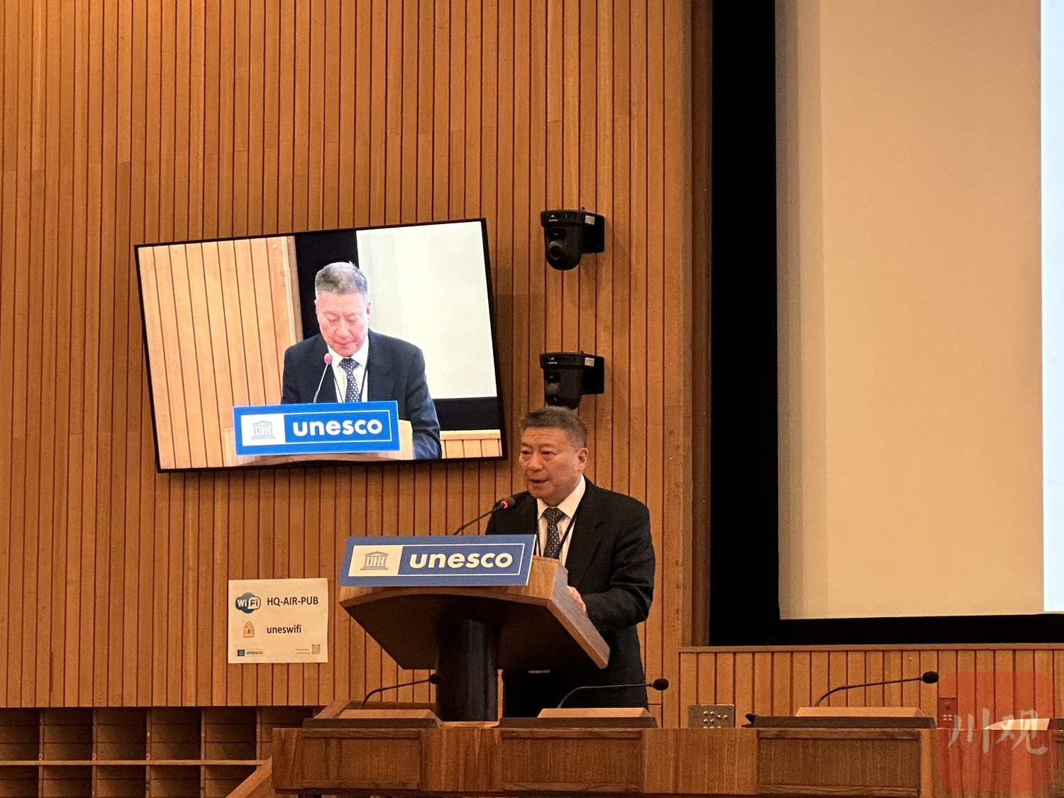 法国时间7月12日晚,在第47届世界遗产大会期间,由中国国家文物局和四川省人民政府共同主办,由四川省文物局、中国古迹遗址保护协会、中国文化遗产研究院联合承办的“考古遗产保护传承与可持续发展”边会在巴黎举行。现场,四川大学杰出教授、考古文博学院学术院长霍巍以三星堆和金沙等遗址为例,分享了四川考古遗产保护实践的生动案例。
