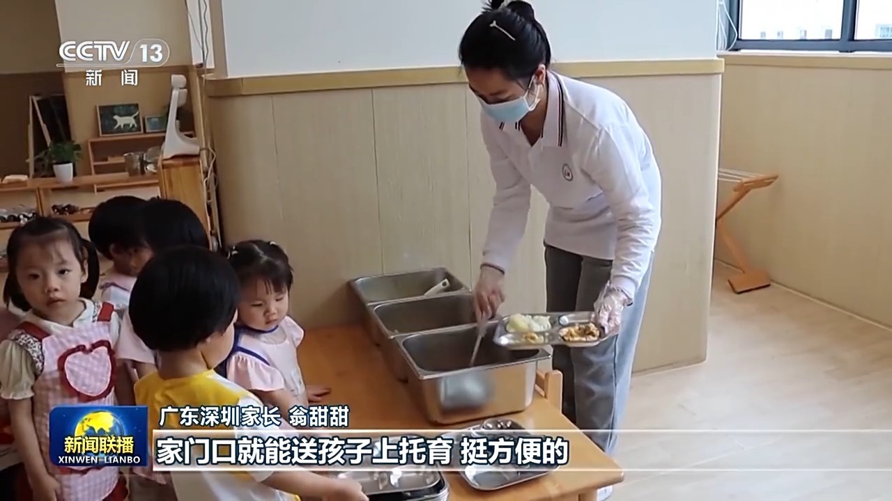 广东深圳家长 翁甜甜:上班的时候顺路就给孩子送过来了,家门口就能送孩子上托育,挺方便的。