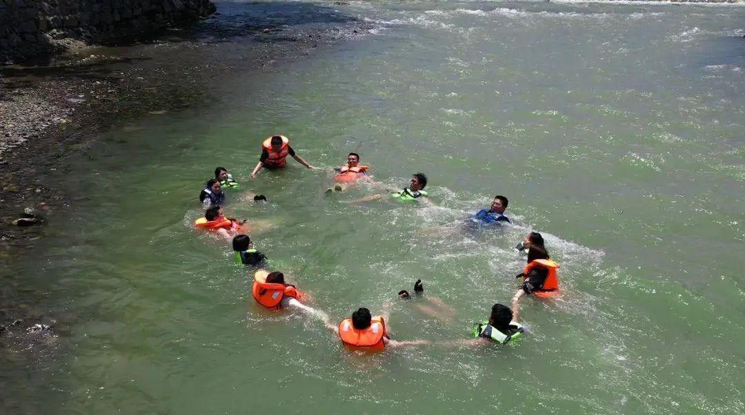 浙江某景区“窝囊版漂流”,穿救生衣浮在水面,不划桨也不翻船。图据钱江晚报