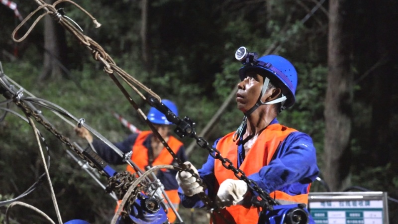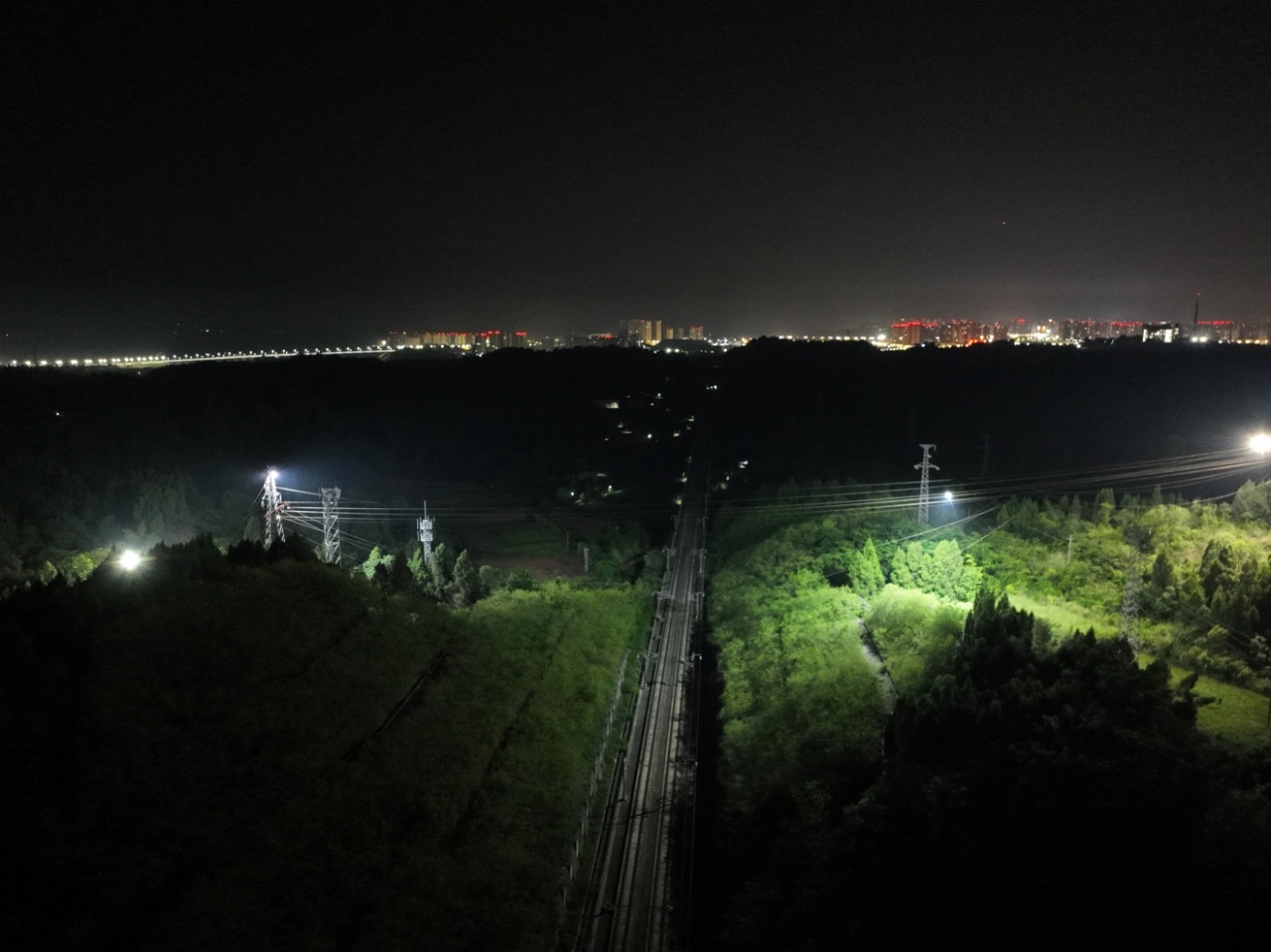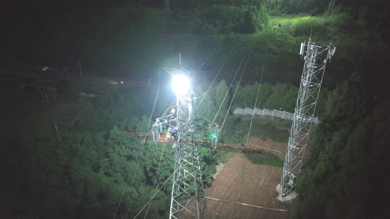 工程约持续两周时间,每晚列车进入停运期,资阳供电公司的工作人员就爬上铁塔开展工作。“这次架线工程非常不容易,一方面,我们选择在凌晨列车停运的时间作业,夜间视线非常不好。另一方面,夏季天气炎热且周围树林茂密蚊虫多,也给施工带来了难度。”资阳雁江花果山110千伏输变电工程项目负责人卢阳说。