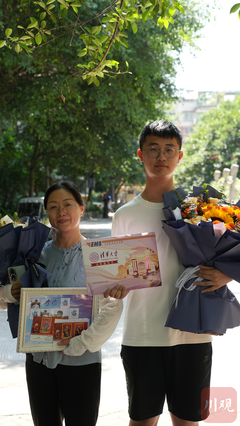 “易锦城同学,恭喜恭喜,你的高考录取通知书到了!”7月14日下午,在核对身份证和准考证信息后,宜宾邮政投递员马永强和黄勇刚将一封清华大学录取通知书送到了家住宜宾市叙州区的易锦城手中,随同通知书一起送达的,还有一束鲜花以及装有个性化定制明信片和邮票的专属相框。这是宜宾今年邮寄送达的首封重点大学高考录取通知书。