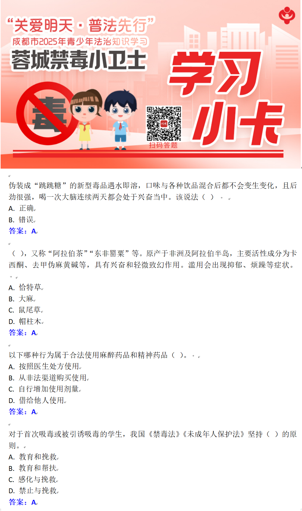 方式一:在川观新闻首页,点击右下方悬浮球,找到《蓉城禁毒小卫士——“关爱明天·普法先行”成都市2025年青少年法治知识学习》活动图片,点击参与活动即可参与;