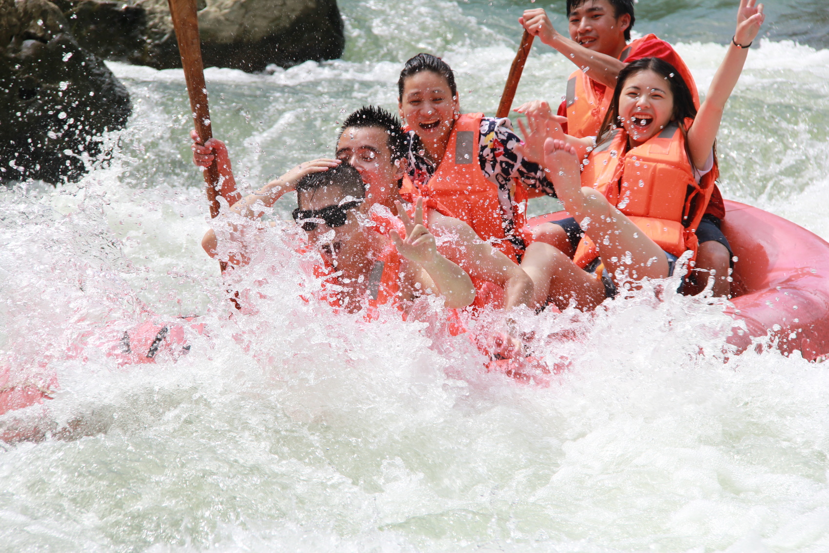 盛夏时节,游客们在通江县诺水河风景名胜区体验漂流项目。(通江县委宣传部供图)