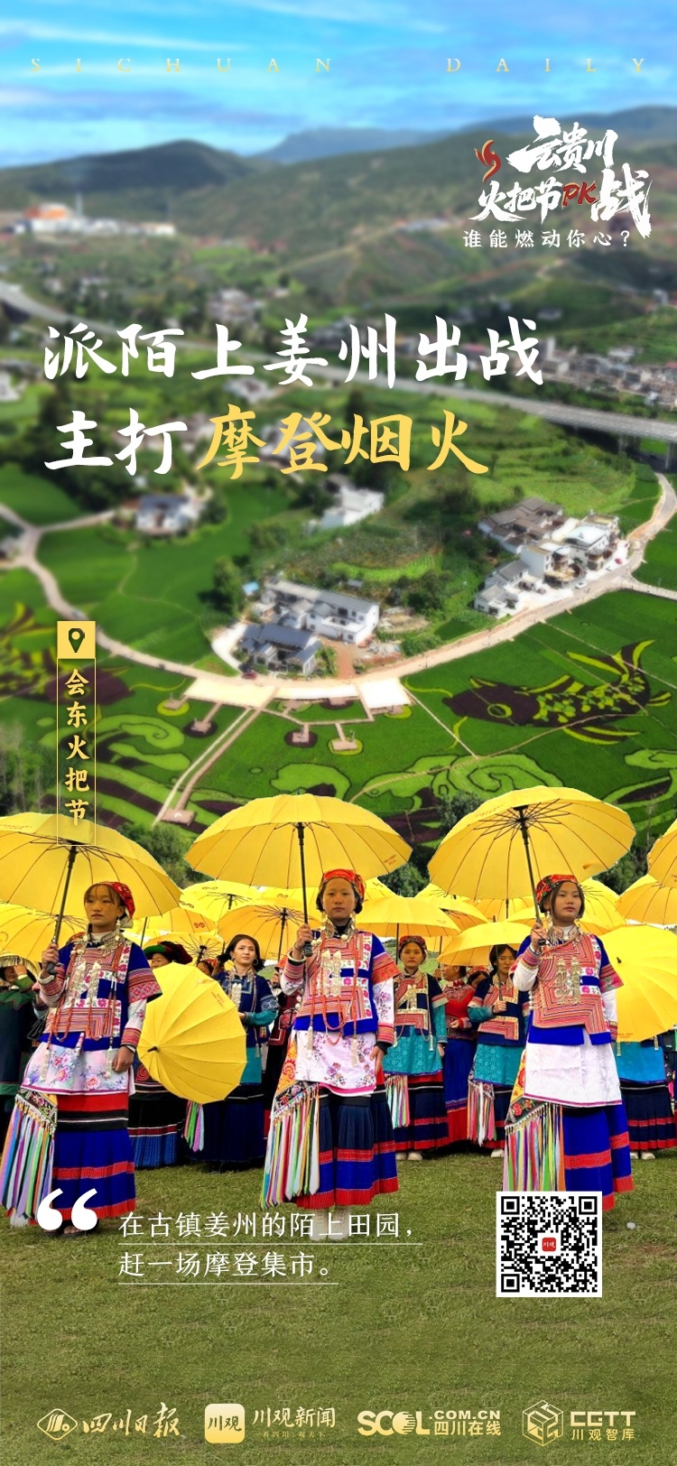 贵州派出的是威宁火把节,传承千年、古朴神秘。