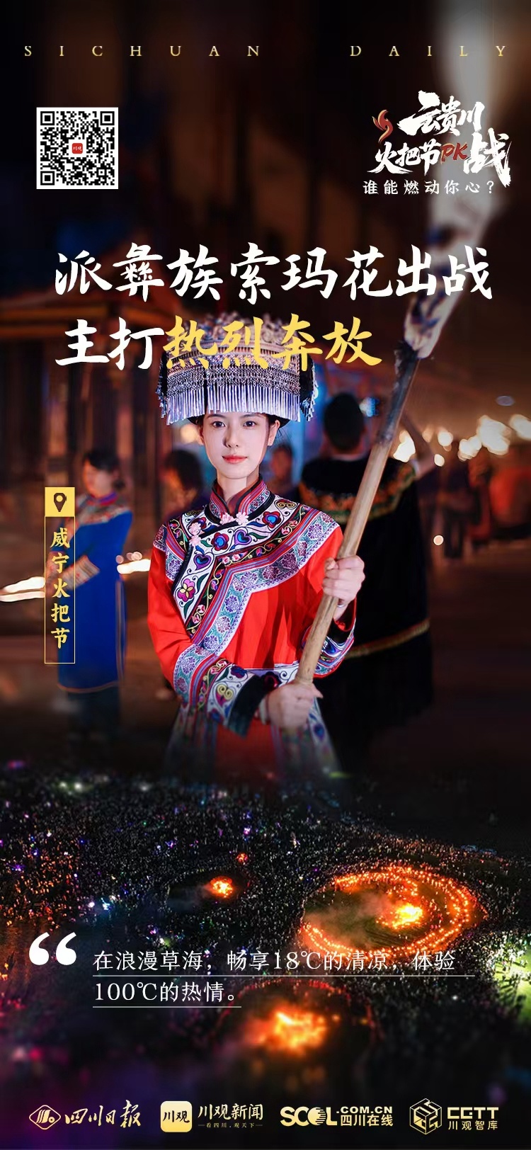 中国西南,热情正燃,火把节的大幕已在云贵川三省璀璨拉开!从万人“朵乐荷”、篝火晚会,到赛马、斗羊、斗鸡、摔跤等传统民俗项目……独具魅力的民族风情体验,不仅是少数民族的盛典,更是对热爱生活、向往激情的你的一种夏夜邀约。