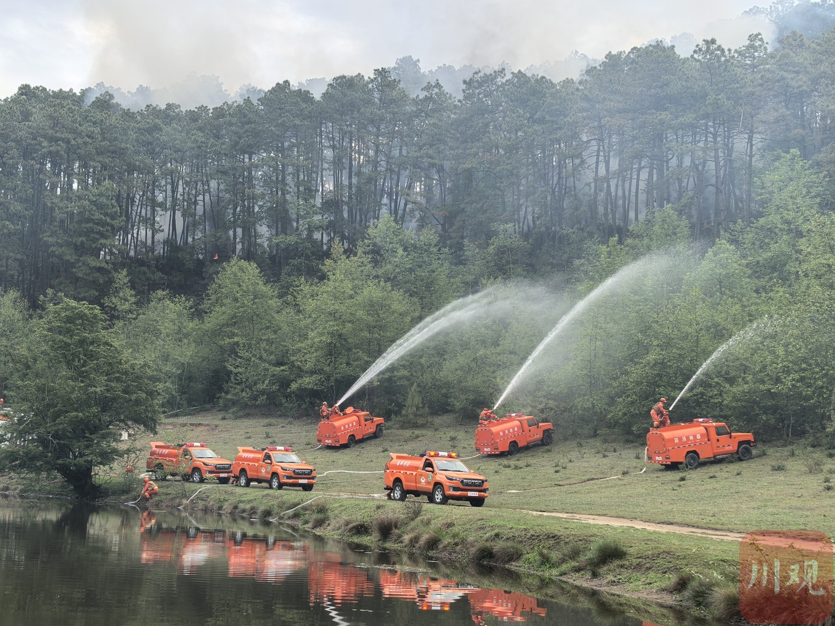 5月16日,凉山州冕宁县在彝海景区附近开展了一场森林火灾扑救演练,县、镇两级应急队伍协同灭火。刘珩 摄