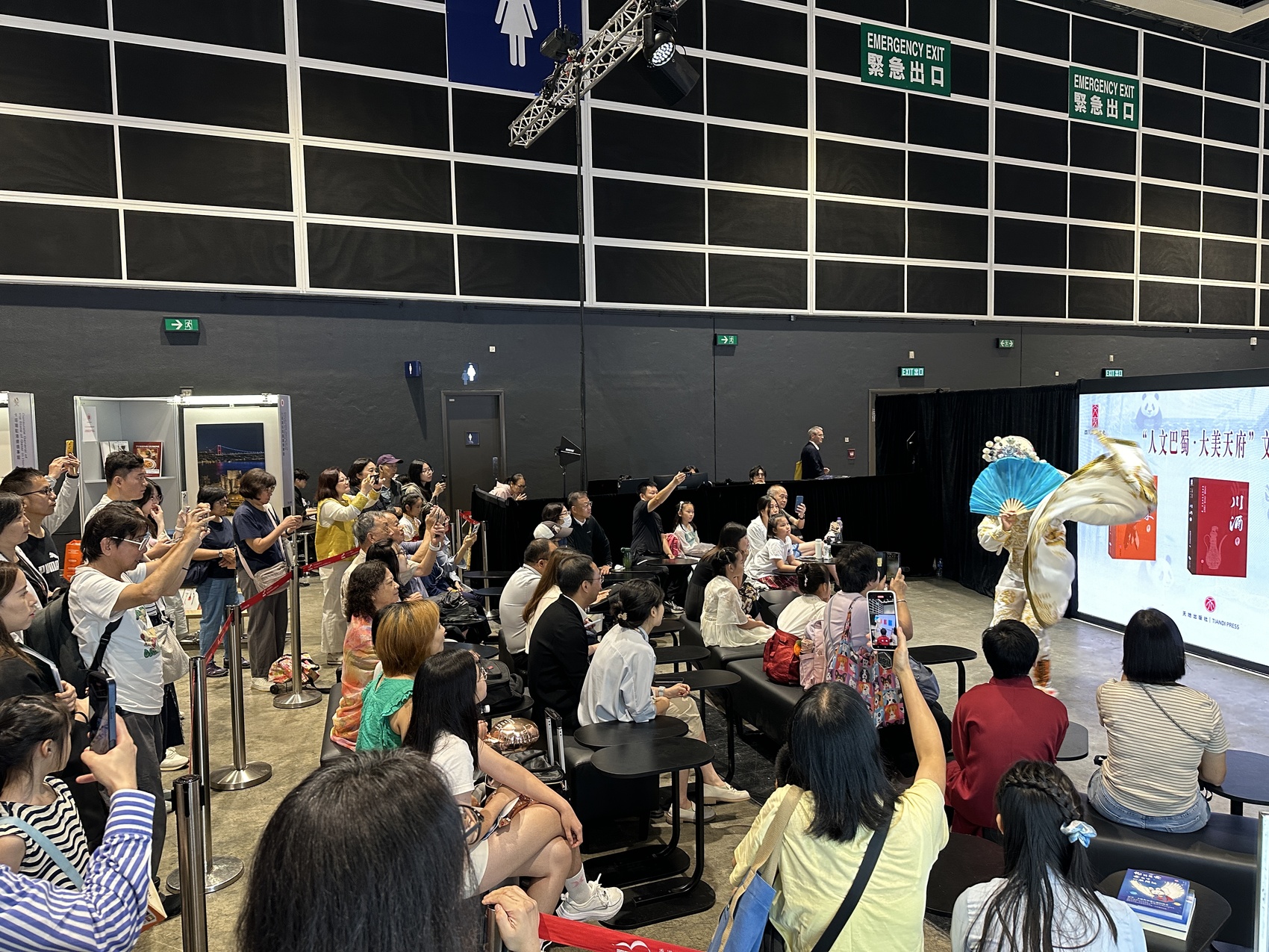 紧接着,《川剧卷》里的绝活变脸惊艳登场,引得现场惊叹连连。“川剧的魅力,在于它融合五大声腔,既有《易胆大》的血性,也有《白蛇传》的灵动,就像粤剧一样,都是中华戏曲的明珠。”天地出版社相关负责人杨敏的话刚落,熟悉粤剧的香港观众纷纷点头,在两种戏曲的共鸣里,感受“锦绣天府”文化的多元与“安逸四川”生活的鲜活。
