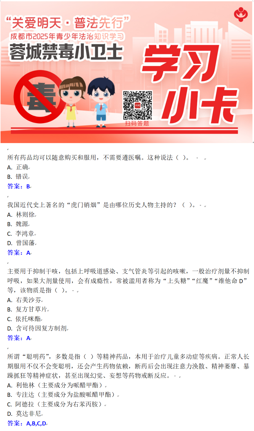 方式一:在川观新闻首页,点击右下方悬浮球,找到《蓉城禁毒小卫士——“关爱明天·普法先行”成都市2025年青少年法治知识学习》活动图片,点击参与活动即可参与;