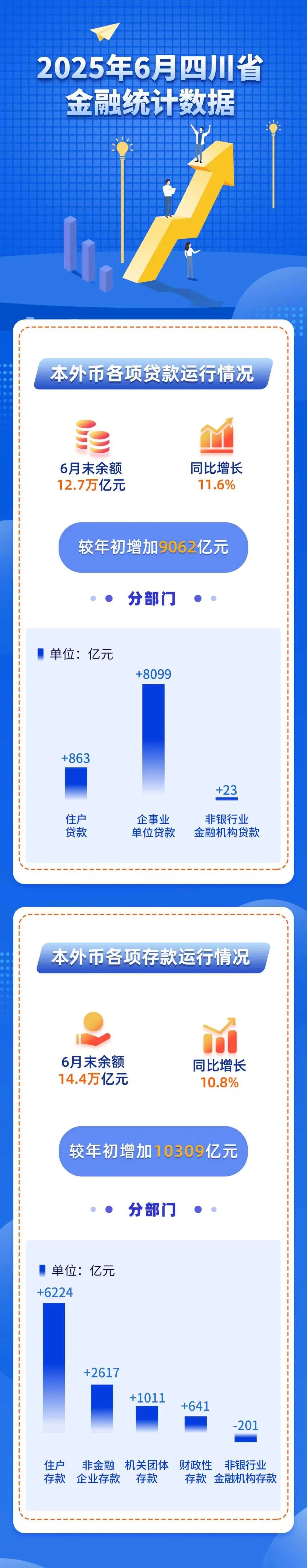 7月16日,中国人民银行四川省分行发布2025年6月四川省金融统计数据,全省存贷款增速均持续保持两位数增长。