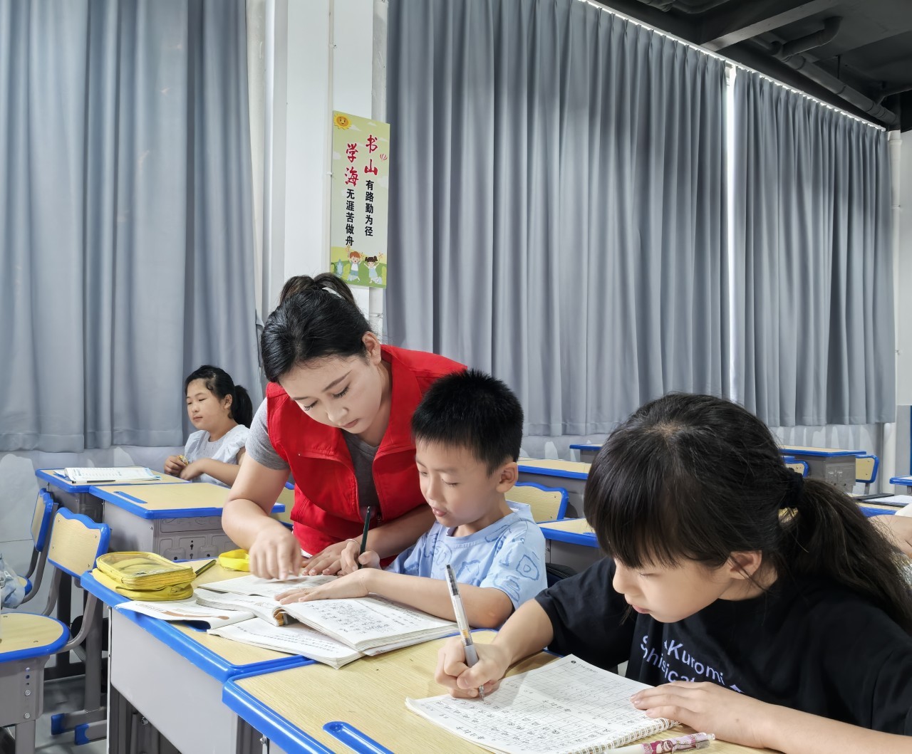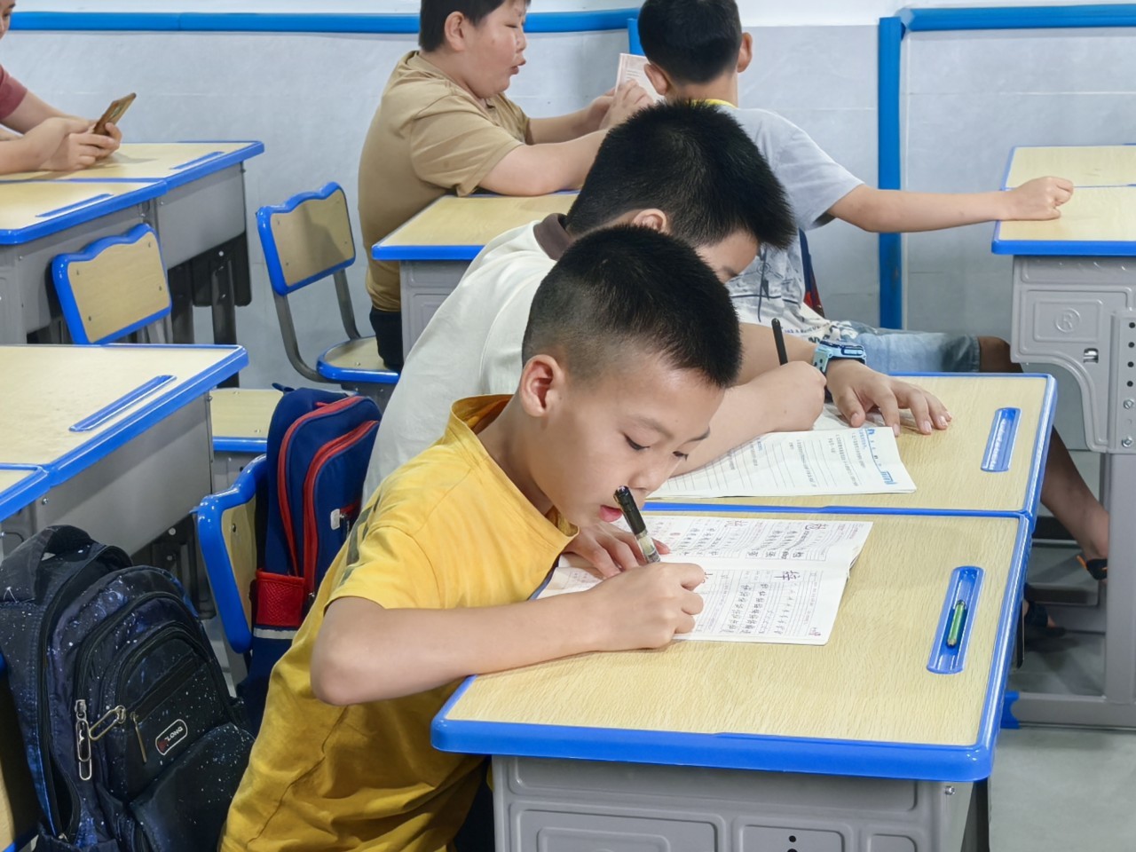 认真做作业的孩子们。