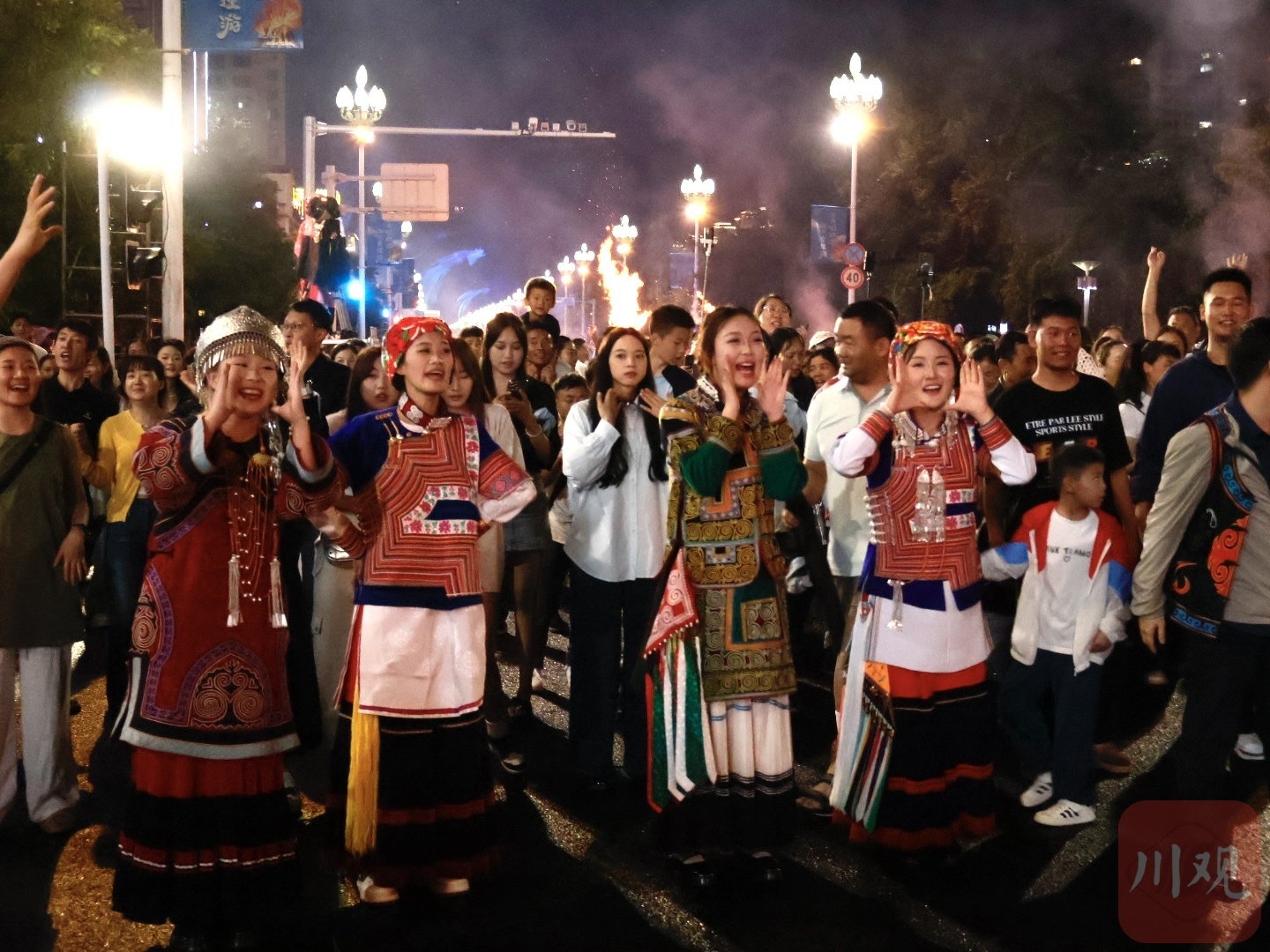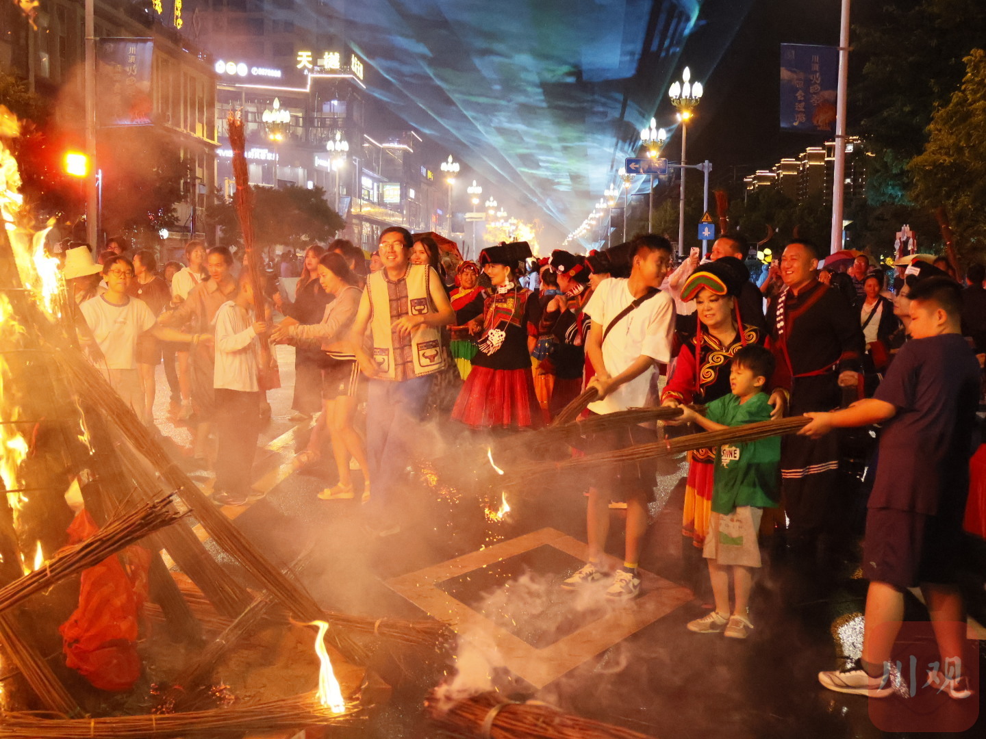 花车出场成为独特风景,两辆花车从滨河路南北相向而行,车上歌手献唱海菜腔、高腔等特色曲目,大号队表演、毕摩祈福仪式依次进行。祈福仪式完成后,会理市干部群众代表与现场嘉宾一起点燃火堆。