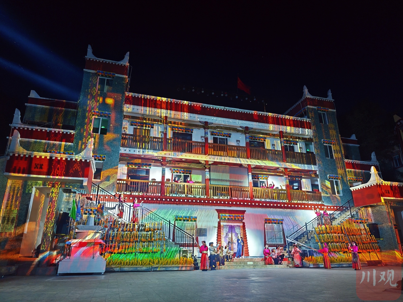 7月16日晚,夜幕笼罩群山,一束灯光打亮马尔锅庄传习所的广场。身着绚丽嘉绒藏族服饰的演员们徐徐走出,省级非物质文化遗产马尔锅庄的古老韵律在空气中流淌,大型原创实景剧《马尔娃》的大幕就此缓缓拉开,婚丧嫁娶、春耕秋收等当地民俗文化被一一演绎。由中共小金县委宣传部、小金县宅垄镇精心打造的大型原创实景剧《马尔娃》在宅垄镇马尔锅庄传习所隆重首演。