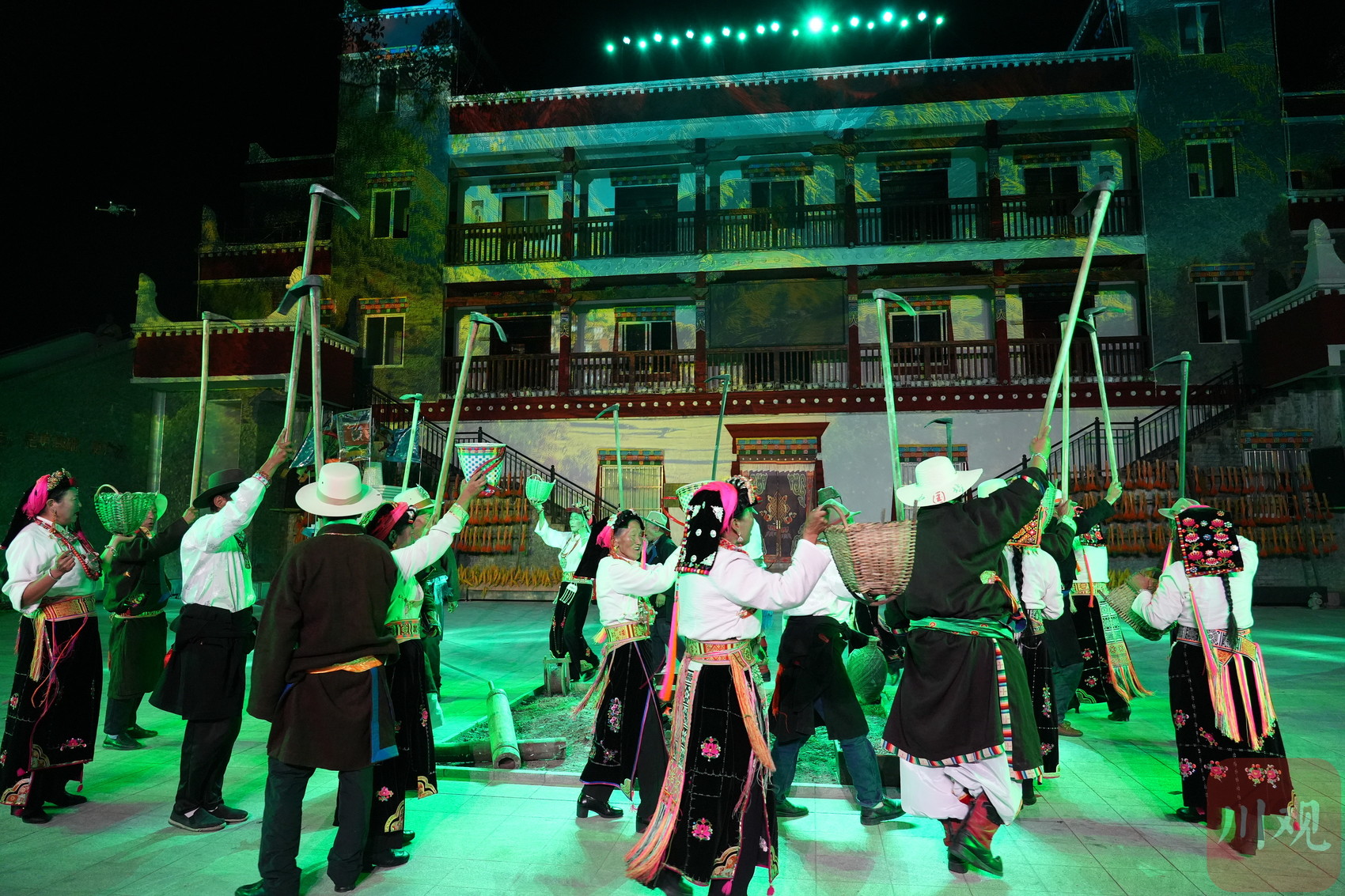 同时省级非物质文化遗产马尔锅庄作为贯穿全剧的文化核心,呈现远超“表演”本身。“刚刚我们跳的《恩熙尼玛》,是我小时候跟着阿妈学的第一支锅庄,那些脚步、手势,几十年没变过;弯腰是敬土地,抬手是谢蓝天,转圈是盼团圆……”当地演员牛成媛的话语里,藏着非遗传承的温度,每一个动作都是历史的密码,每一段旋律都是文化的基因。
