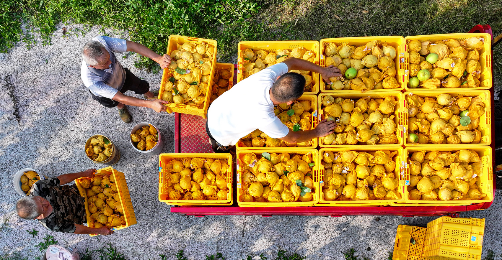 7月17日,位于眉山市仁寿县曹家镇的千农禾农产品种植农民专业合作社200亩梨园里,合作社负责人陈凯正和果农们穿梭其间,将摘下枝头的“六月雪”熟练地分拣、码放,再仔细装入筐中。