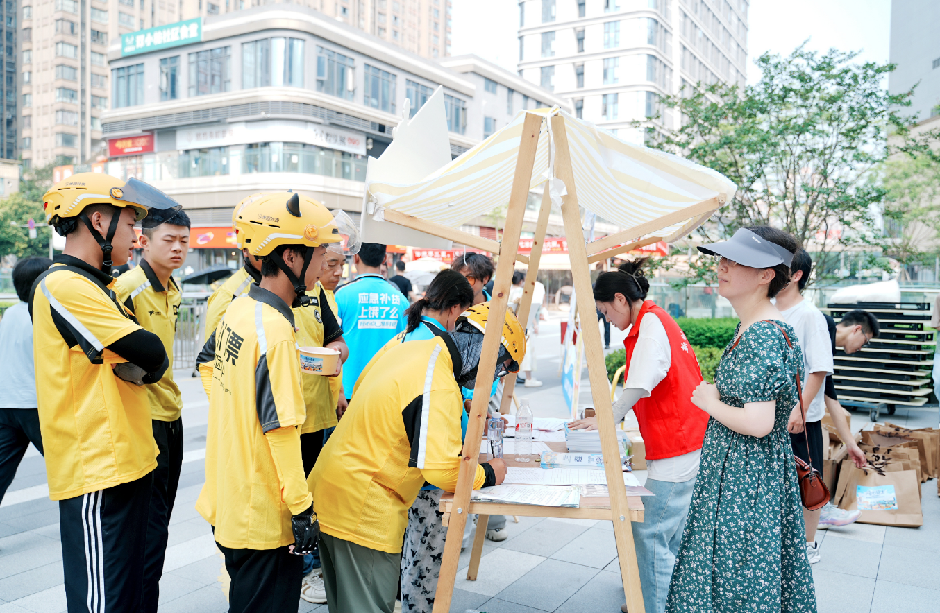 场内气氛温馨,场外的“暖‘新’服务市集”则被骑手们挤得水泄不通。这里都是实打实的贴心福利——义诊、暑期子女活动、电瓶车检修保养、政策咨询及手机贴膜等10余项服务吸引超100人次体验。
