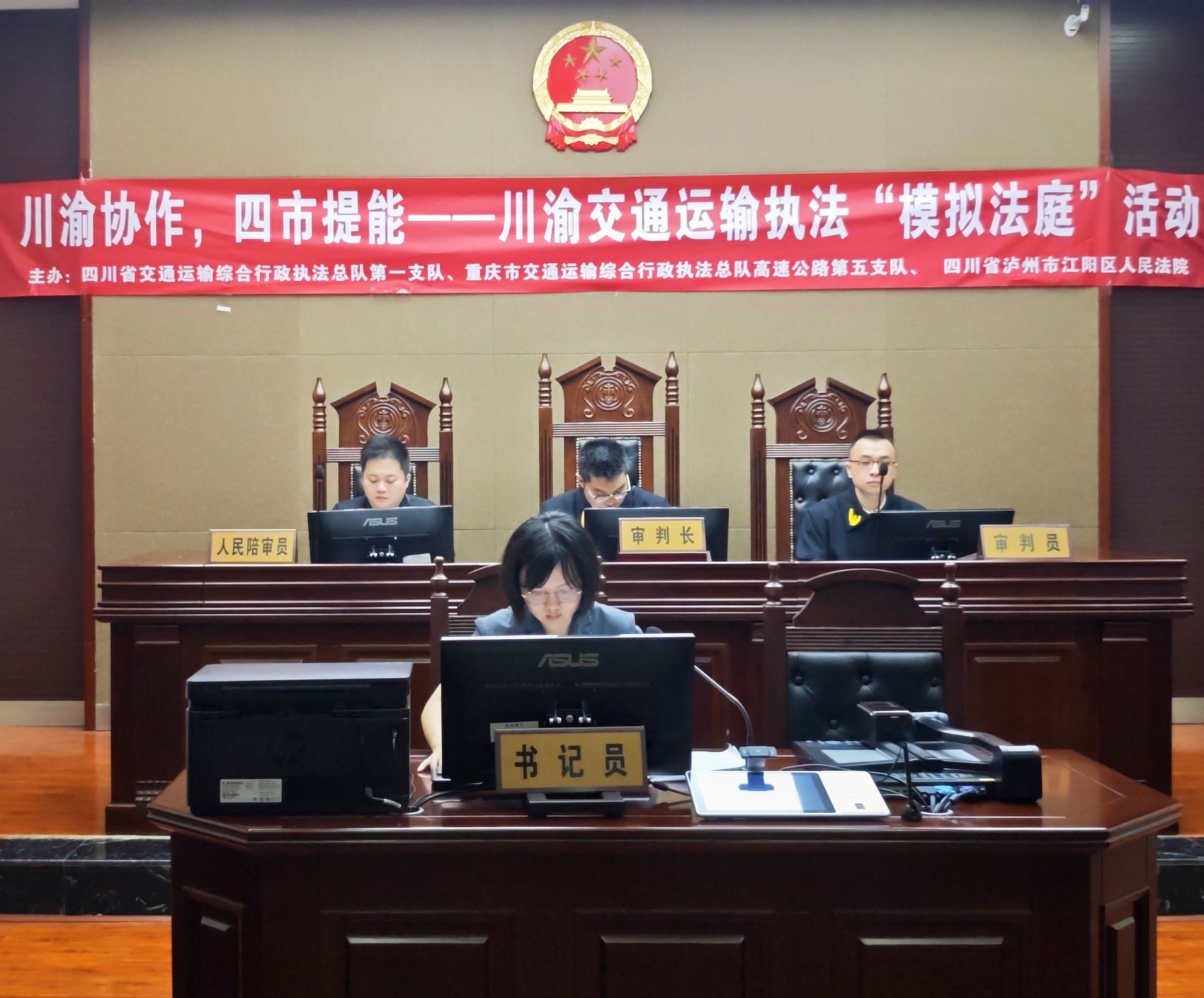 7月17日15:00,在泸州市江阳区人民法院,一场特别的模拟法庭正式开庭。来自四川、重庆两地交通执法队伍作为诉讼参加人,以真实案例为原型,完整模拟了开庭准备、法庭调查、法庭辩论、最后陈述等庭审流程。