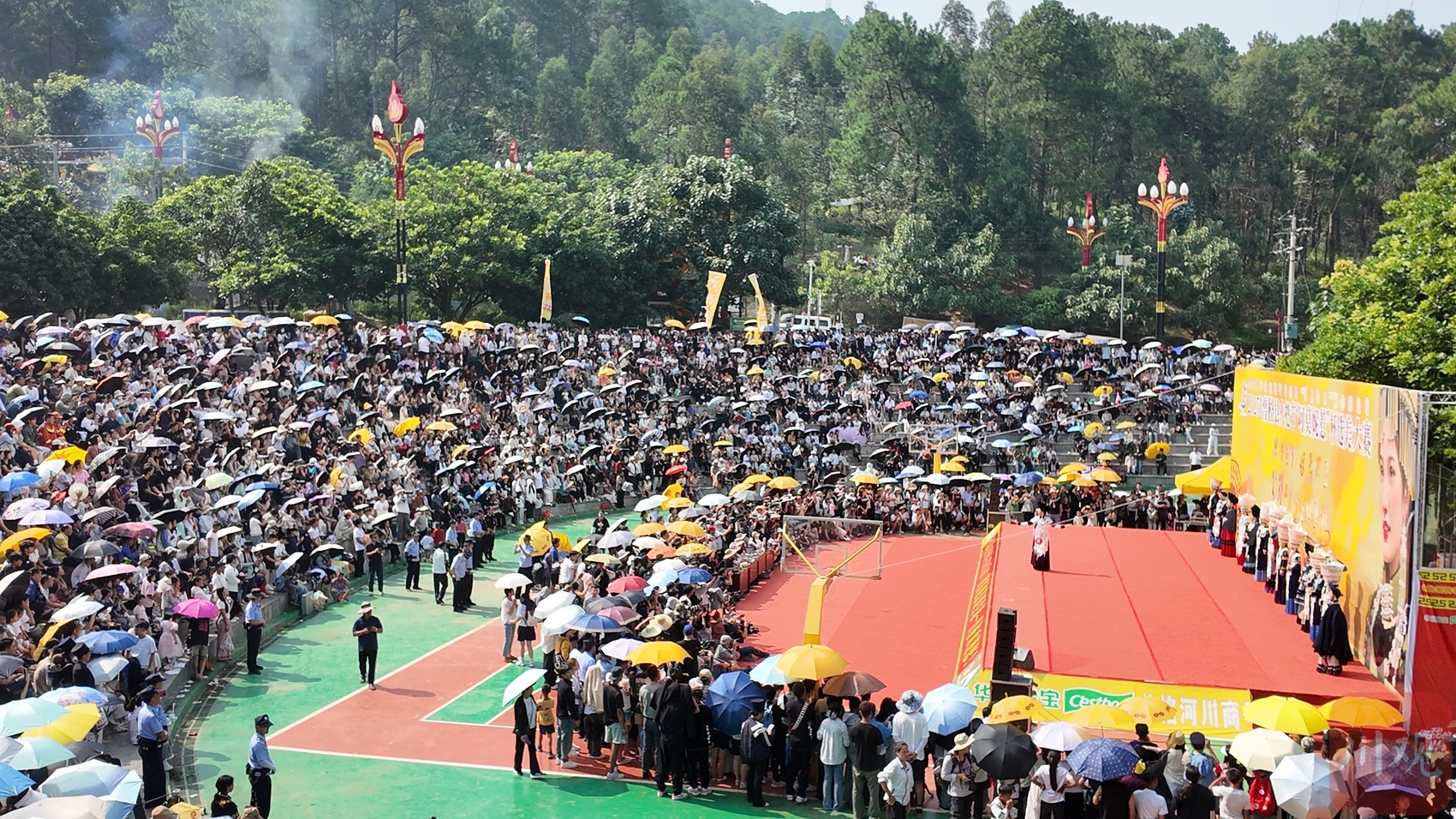 朵乐荷,是一种由女性集体表演的歌舞活动,参与者身着盛装,手持彩巾和黄油伞,以“一领众合”的演唱方式和富有韵律的舞步转圈,形成壮观的场面。看,千人朵乐荷来了。