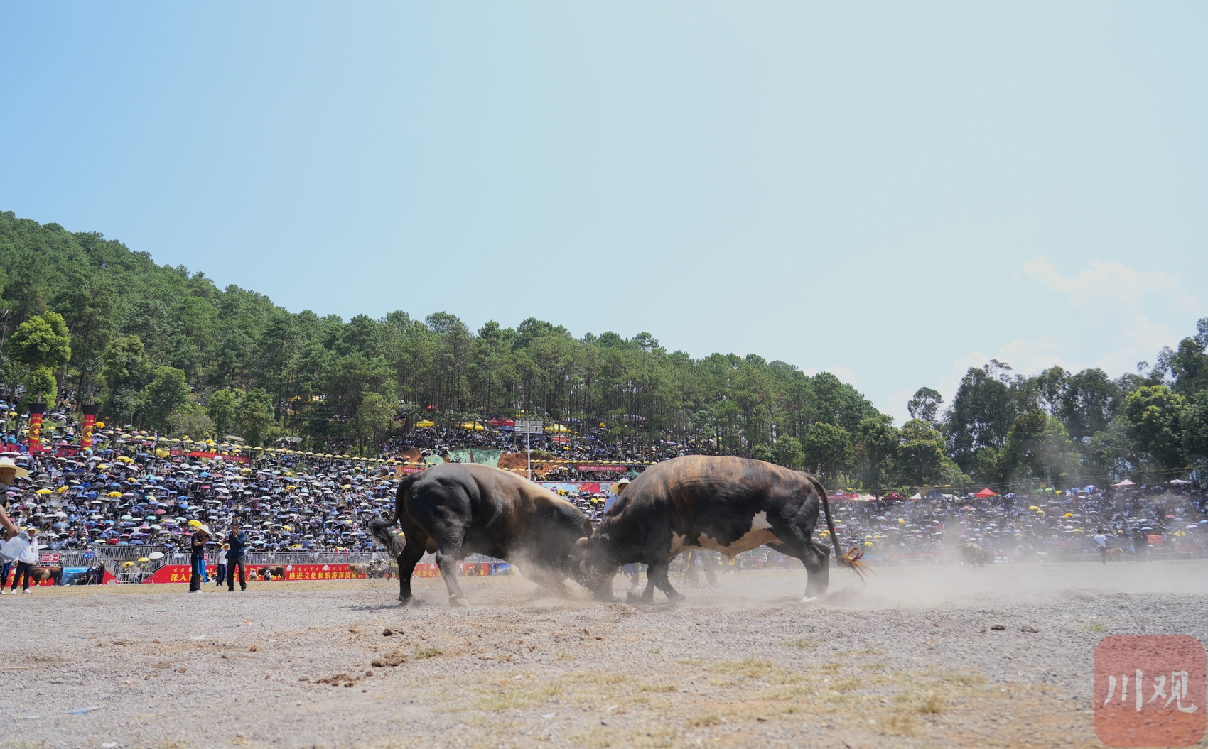 而2025年凉山彝族火把节斗牛大赛,更是因为战况的“激烈”,吸引了诸多观赛者。此次近200头牛参赛,除凉山州内的选手外,还有云南的选手带牛加入对决。来自凉山州宁南县的母德强带来自家5岁的牛,他说,这头牛取名为“青龙”,有1580斤,是自己去年特意从云南买来的,去年以来已参加过三场比赛。赛事负责人介绍,今年的比赛很精彩,给大家带来了强烈的视觉冲击,说明火把节真正是眼睛的节日。
