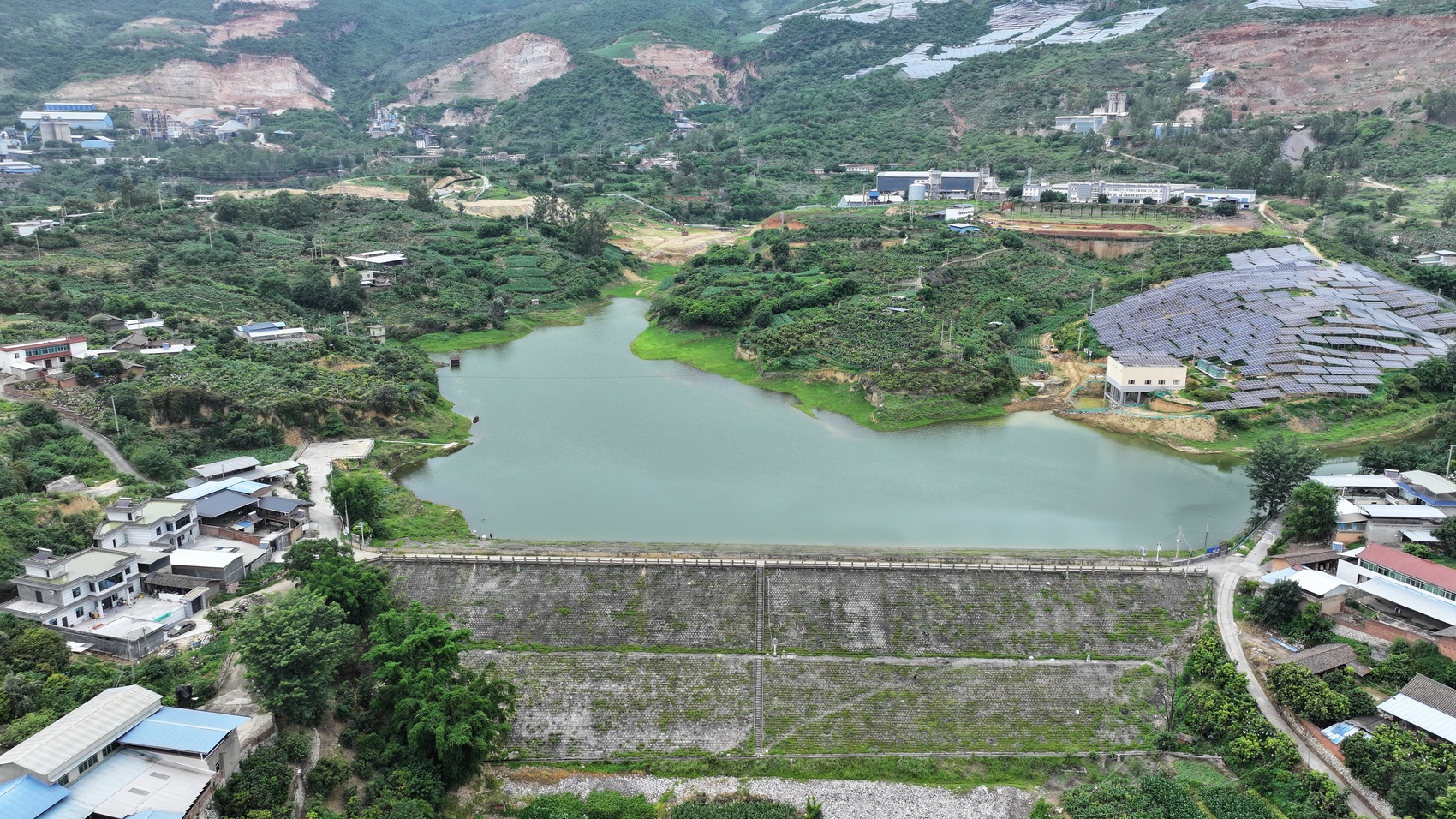 进入盛夏,位于龙洞灌面的金桥村山坡上星光点点,一排排“光伏卫士”整齐列队,这里就是灌溉项目的“能量心脏”,项目总装机3.5MW。有了这片动力十足的“蓝色海洋”,金沙江水将经干箐沟提灌站、干箐沟山坪塘,一路逆流至海拔1300多米的龙洞水库,以平均每小时900立方米的流量,向龙洞水库提供稳定水源。