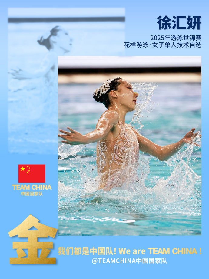 ▷19日,2025年世界泳联世锦赛花样游泳女子单人技术自选决赛中,中国选手徐汇妍以272.9917分获得金牌。这是中国队在本届世锦赛获得的首枚金牌,同时也是中国队首次在世锦赛上获得该项目金牌。