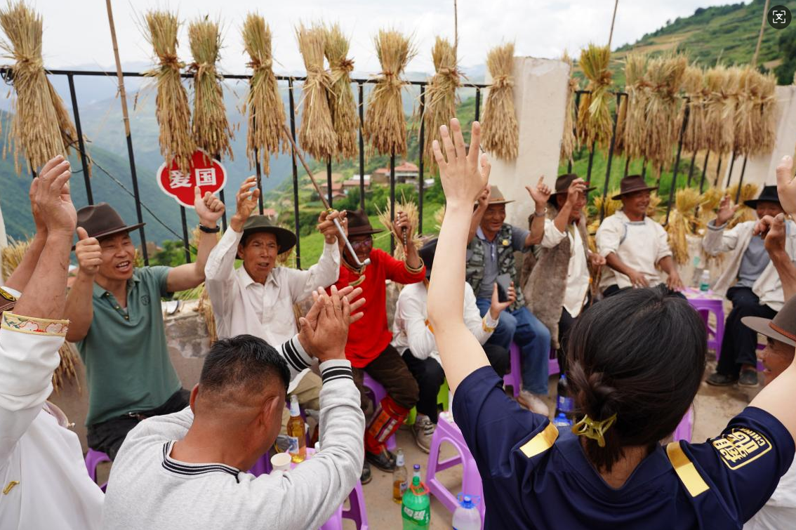 当实践团踏入知木林镇弼石村“尔库”非遗文化节,推普行动与文化传承碰撞出耀目火花。在国家级非物质文化遗产“阿尔麦多声部民歌”的悠扬旋律中,79岁的传承人扎西握紧队员双手:“这些调子是祖先留给我们的血脉密码,这‘活’起来的传承,让我这老头子心里滚烫!”知木林镇党委副书记余海平说:“语言的桥,让深山非遗走向了世界舞台。”