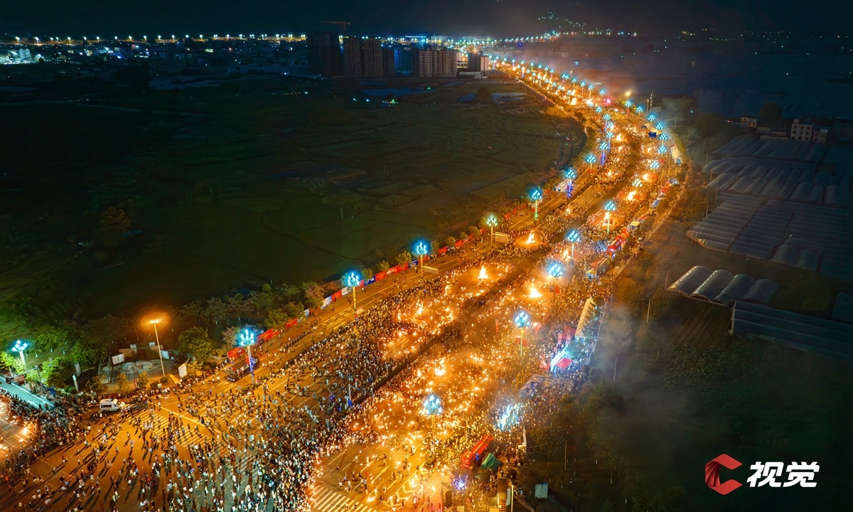 7月18日晚,2025中国西昌·凉山彝族传统火把节狂欢夜,在西昌市航天大道东延线“点燃”夏日激情。C视觉签约摄影师 李小平 摄
