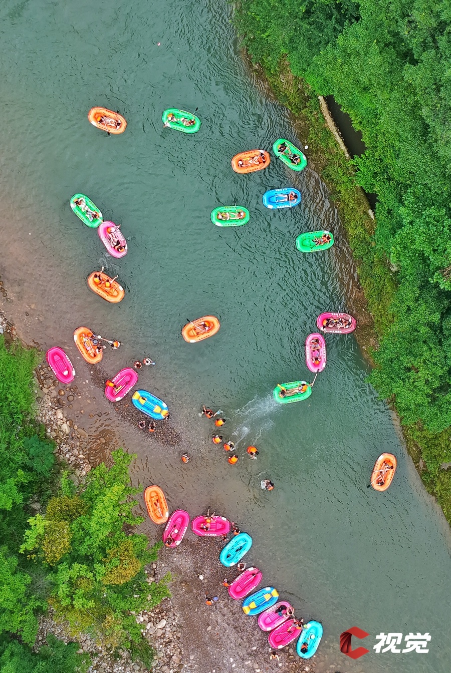7月13日,炎炎夏日,流经崇州市街子镇三镇社区的干五里河成为避暑胜地,游客们沿河漂流,享夏日清凉。C视觉签约摄影师 刘陈平 摄