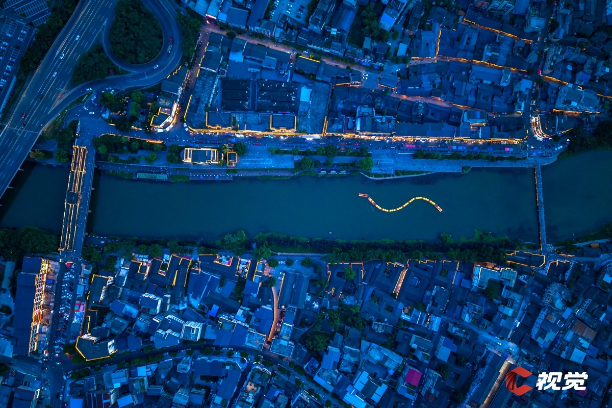 7月10日,乐山市苏稽古镇夏夜凉爽,市民游客纷纷来到峨眉河边纳凉消暑,游船与古镇夜色共绘出一幅夏日夜游图。C视觉签约摄影师 胡威 摄