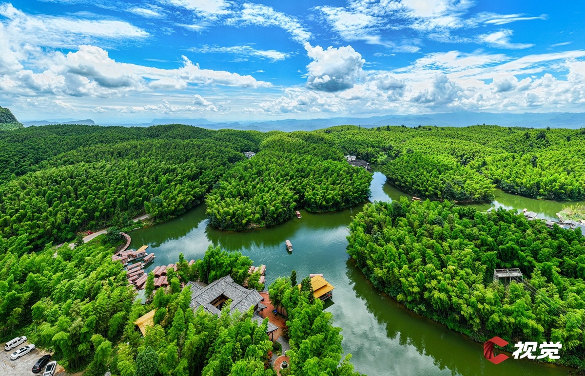7月1日,夏日的宜宾市蜀南竹海翠竹成荫,气候怡人,不少游客选择乘坐游船畅游竹海。C视觉签约摄影师 张华 摄