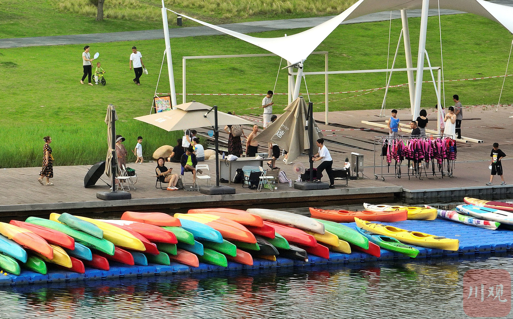 7月19日傍晚,兴隆湖浪速运动码头迎来一天中最热闹的时刻。夕阳西下,市民们陆续聚集于此,救生衣上身、桨板入水,水面顿时被欢声笑语与奋力划动的水波点亮。