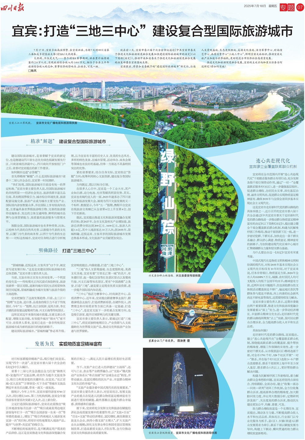 宜宾市委主要负责人表示,要通过打造“三地三中心”,将宜宾独特地理区位、产业资源与人文底蕴转化为世界级文旅产品,推动文化和旅游产业加速与世界接轨。
