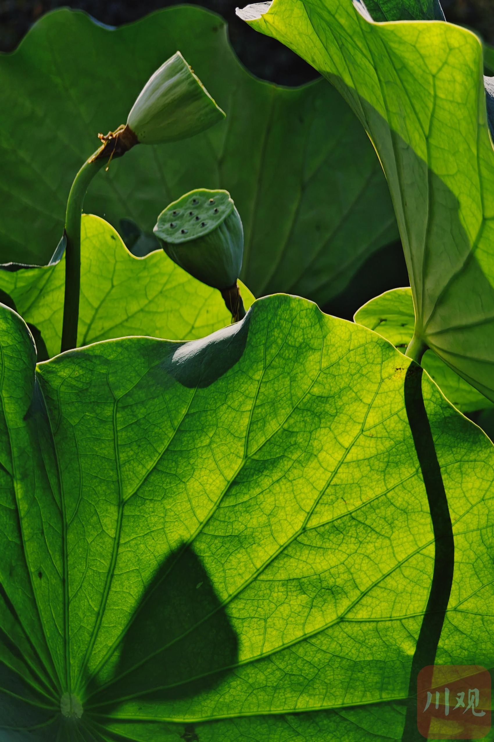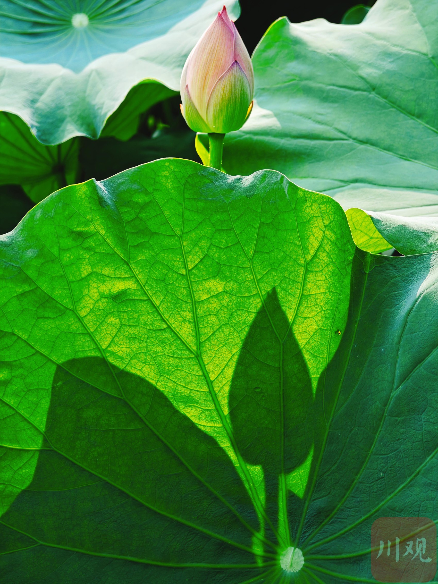 光影构成了荷叶的新图案。