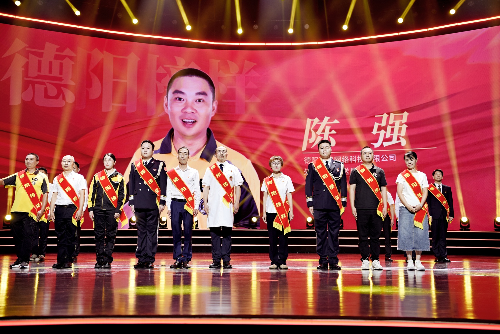 网约配送员陈强作为“德阳榜样”代表,登上“榜样的力量——致敬德阳先锋”主题活动舞台。中共德阳市委宣传部供图