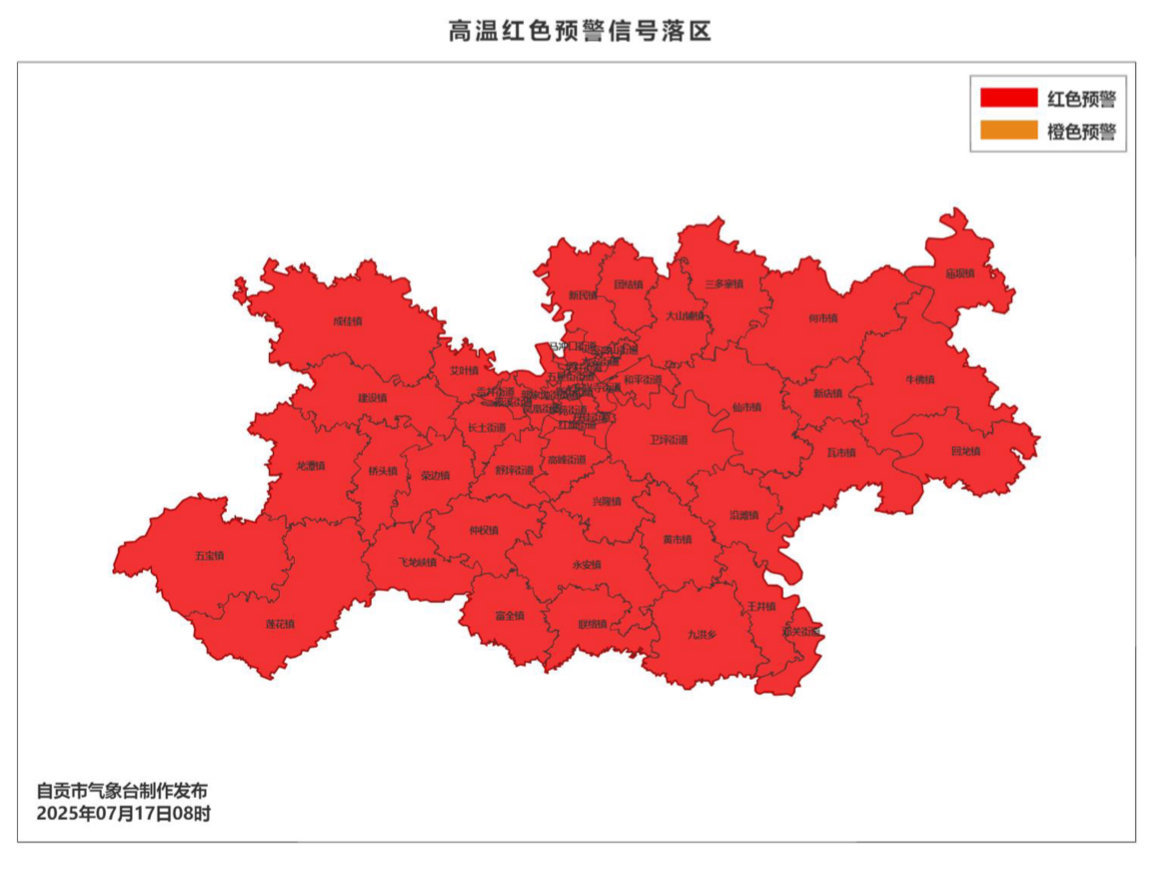 7 月 17 日 8 时,自贡市气象台更新高温橙色预警信号